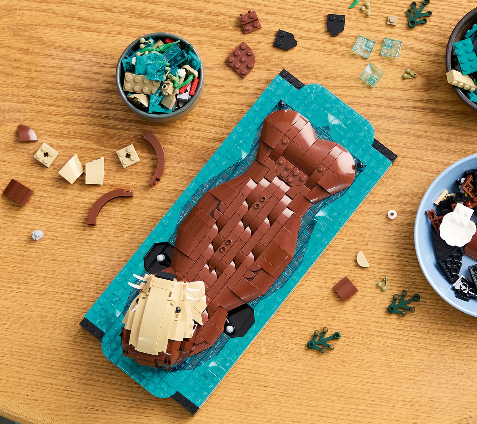 Bring a touch of whimsy to your workspace or living room with these LEGO blocks, creating a heartfelt scene of a mother sea otter floating in a kelp garden with her curious pup. Whether you're an animal enthusiast or a seasoned builder, enjoy hours of creative fun as you pose mama otter and explore the interactive LEGO Builder app. From LEGO.