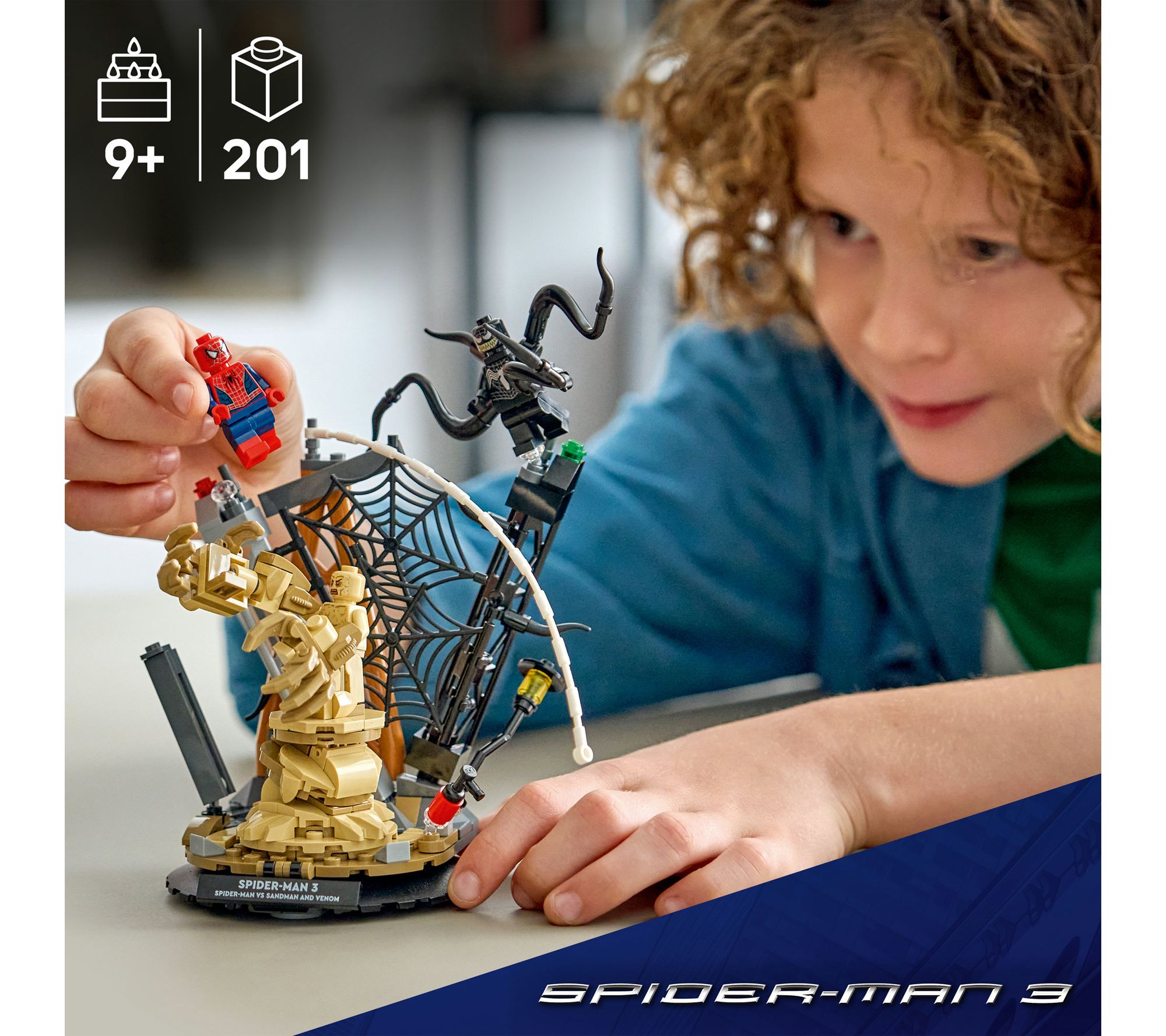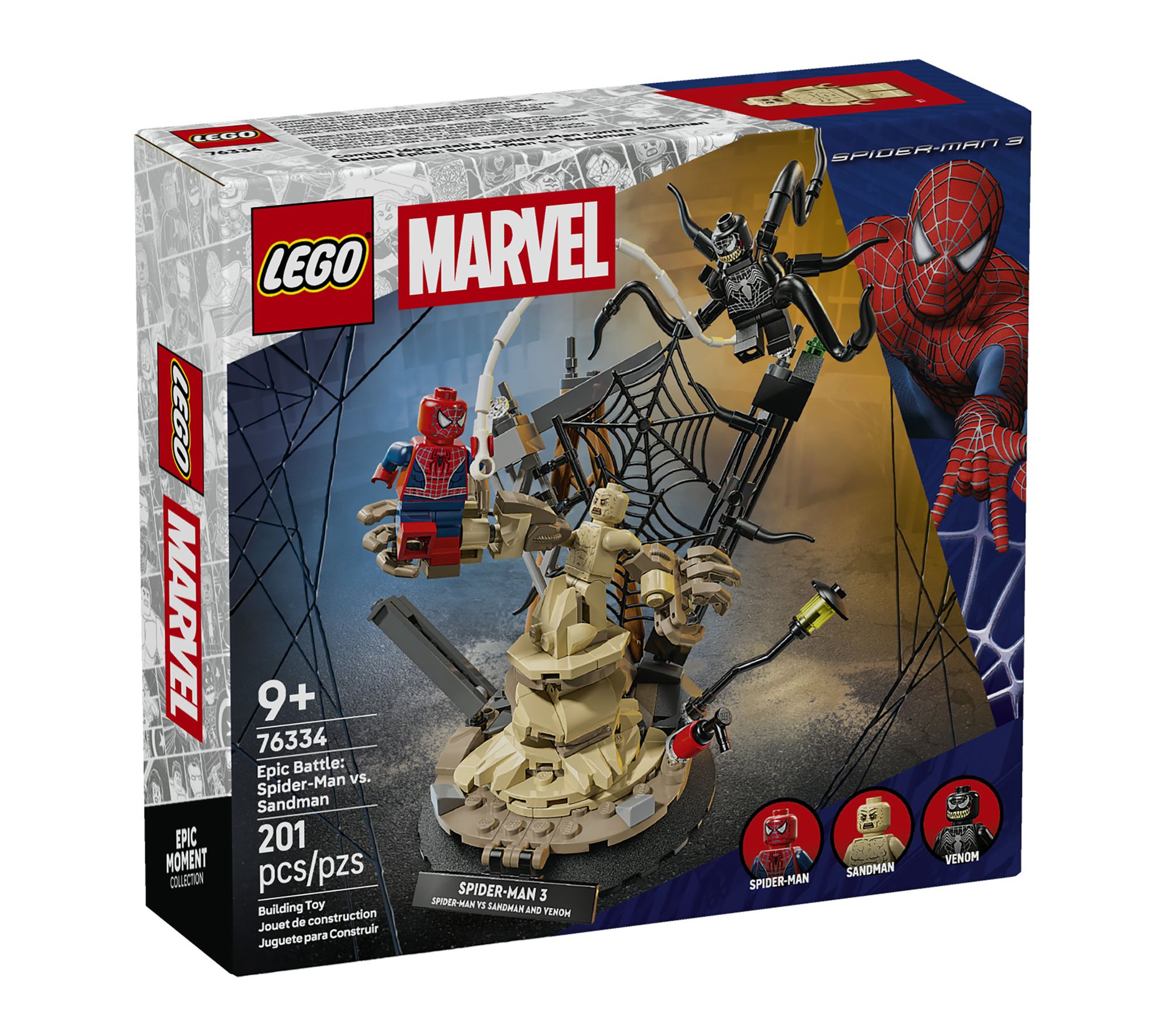 Bring home the excitement of Marvel Studios' Spider-Man 3 as kids and collectors recreate unforgettable scenes or dream up fresh battles with this engaging Spider-Man building blocks set. Three iconic minifigures -- Spider-Man, Venom with poseable tentacles, and Sandman with an oversized arm -- invite action-packed play or an impressive display for any fan's shelf. From LEGO.