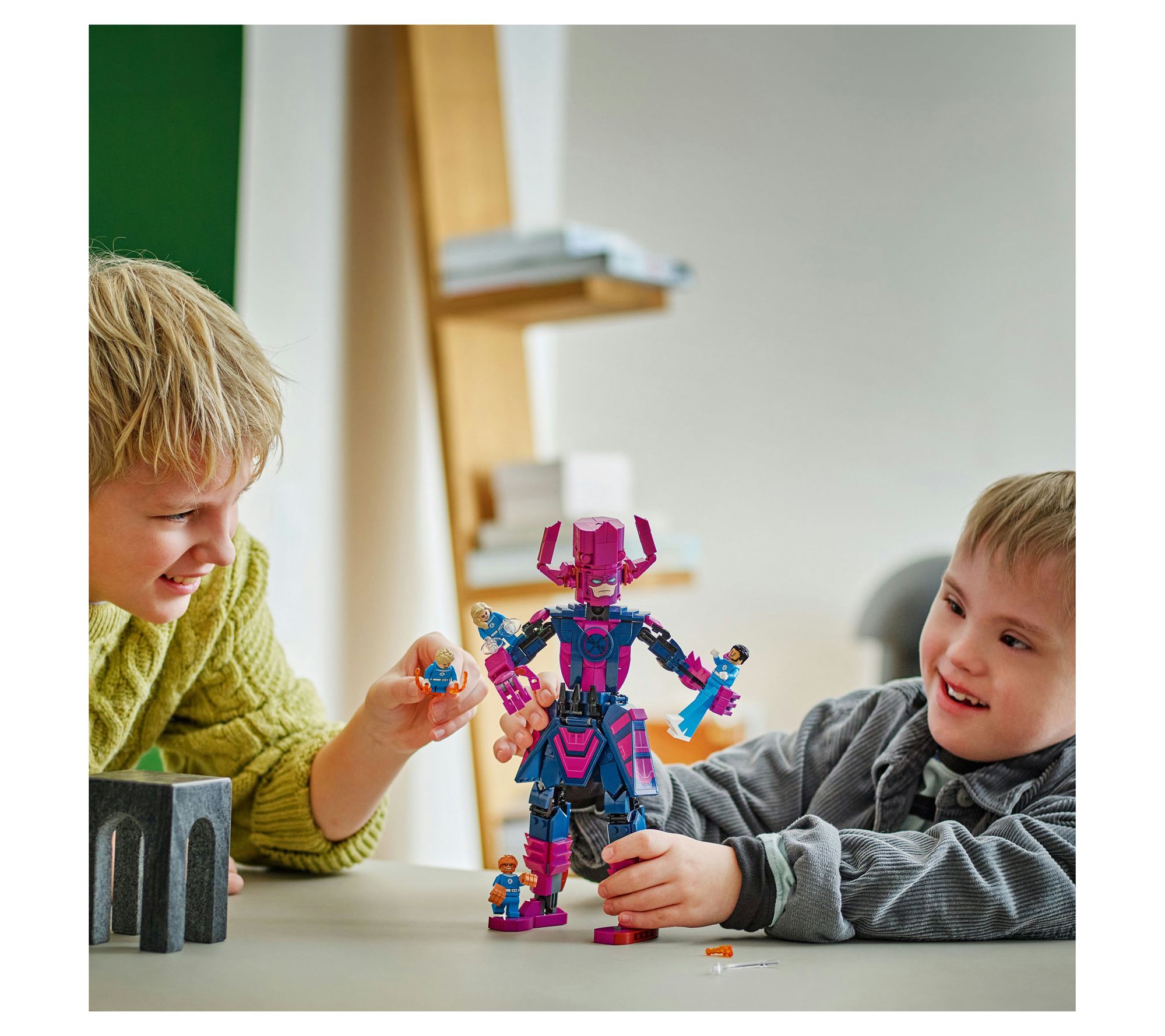 Action-packed adventures await when Marvel fans bring epic battles to life with this Fantastic Four vs. Galactus LEGO blocks set. As Mr. Fantastic stretches to new heights and the Human Torch blasts flame across the sky, kids and collectors alike can relive scenes or create brand-new stories featuring detailed minifigures and a poseable Galactus construction figure. From LEGO.