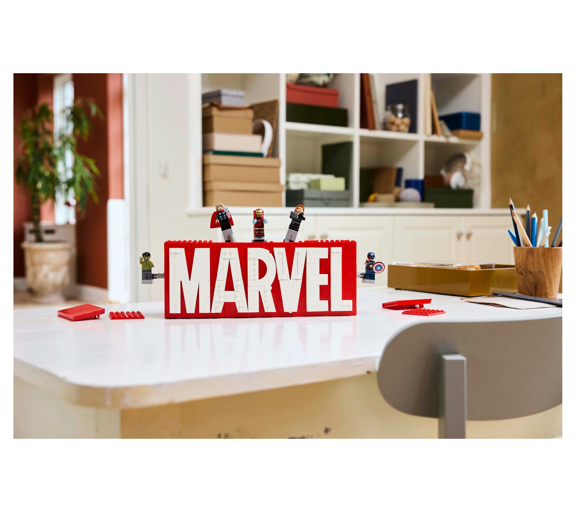 Bring the excitement of the Marvel Universe into your home with the LEGO Marvel MARVEL Logo set! This captivating model features five iconic Avengers minifigures that burst through the bricks, while three explosion features add dynamic action to your display. It's the ultimate gift for fans of Super Heroes and Marvel movies, inviting endless adventures through imaginative play. From LEGO.