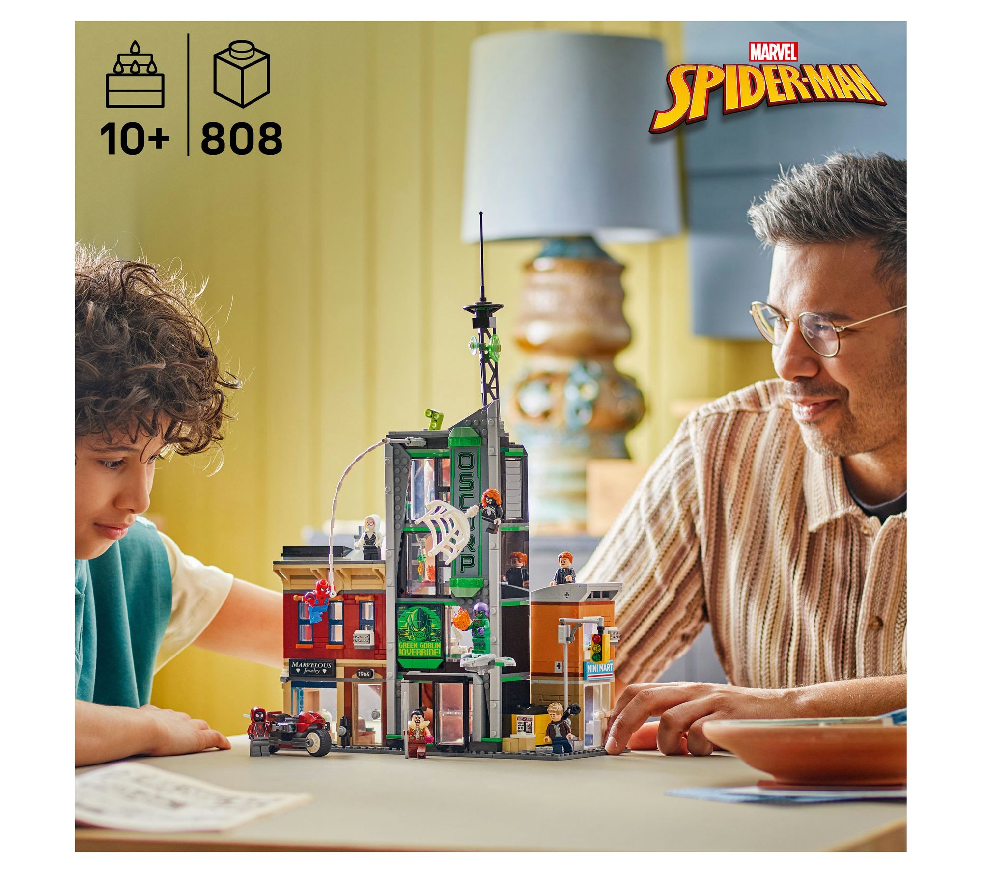 Join the excitement on the streets of New York as Spider-Man, Ghost-Spider, and Miles Morales face off with Green Goblin, Venom, and more with this action-packed Marvel blocks set. With multi-room city scenes, a motorbike, glider, and plenty of ways to role-play, superhero fans can create countless adventures and team up with friends or family for epic build-and-play moments. From LEGO.