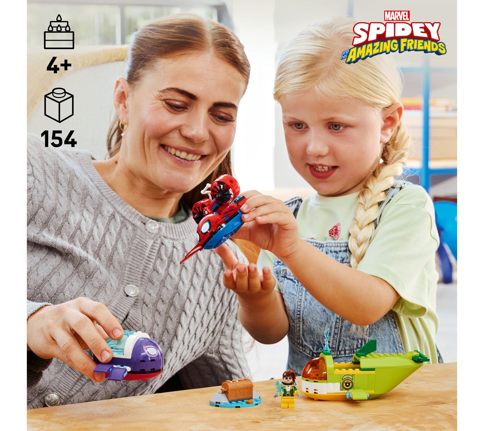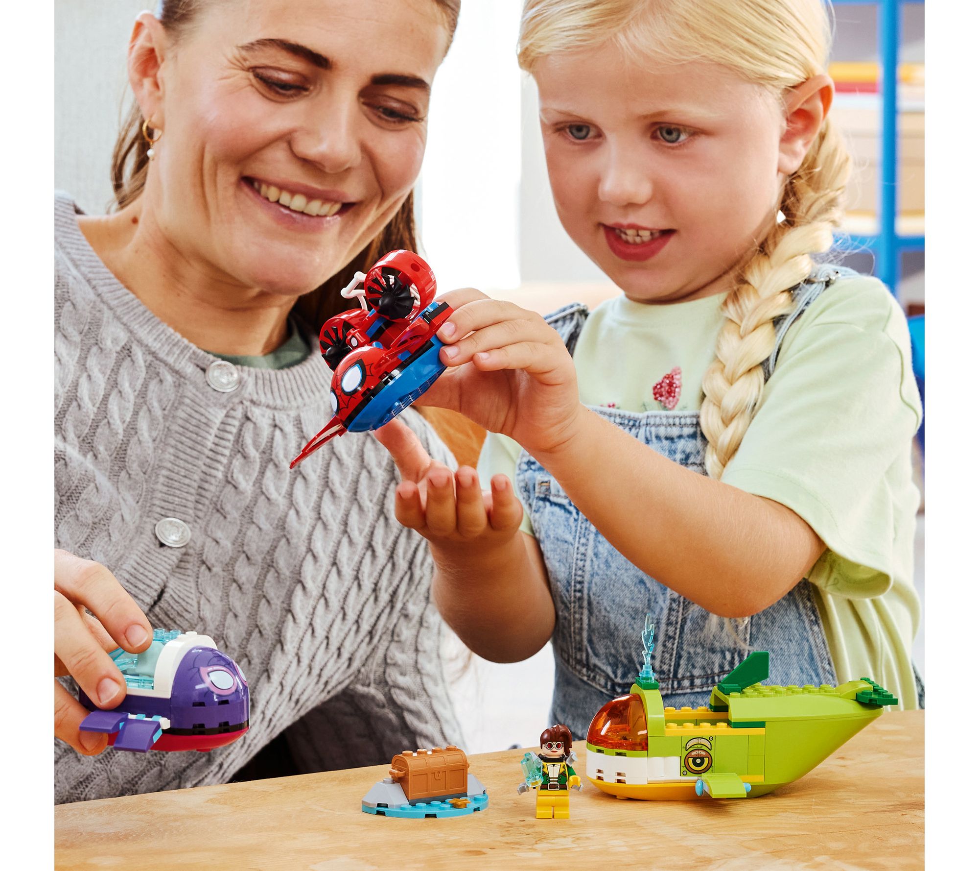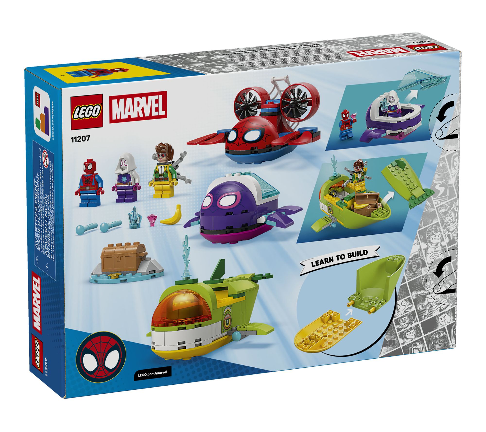 Dive into imaginative underwater adventures with this interactive set of Spidey-themed building blocks, where kids can create thrilling scenes featuring Spidey, Ghost-Spider, and Doc Ock in their action-packed submarines. Excitement unfolds as young builders assemble, play, and join their favorite heroes to protect hidden treasure from villainous hands. From LEGO.