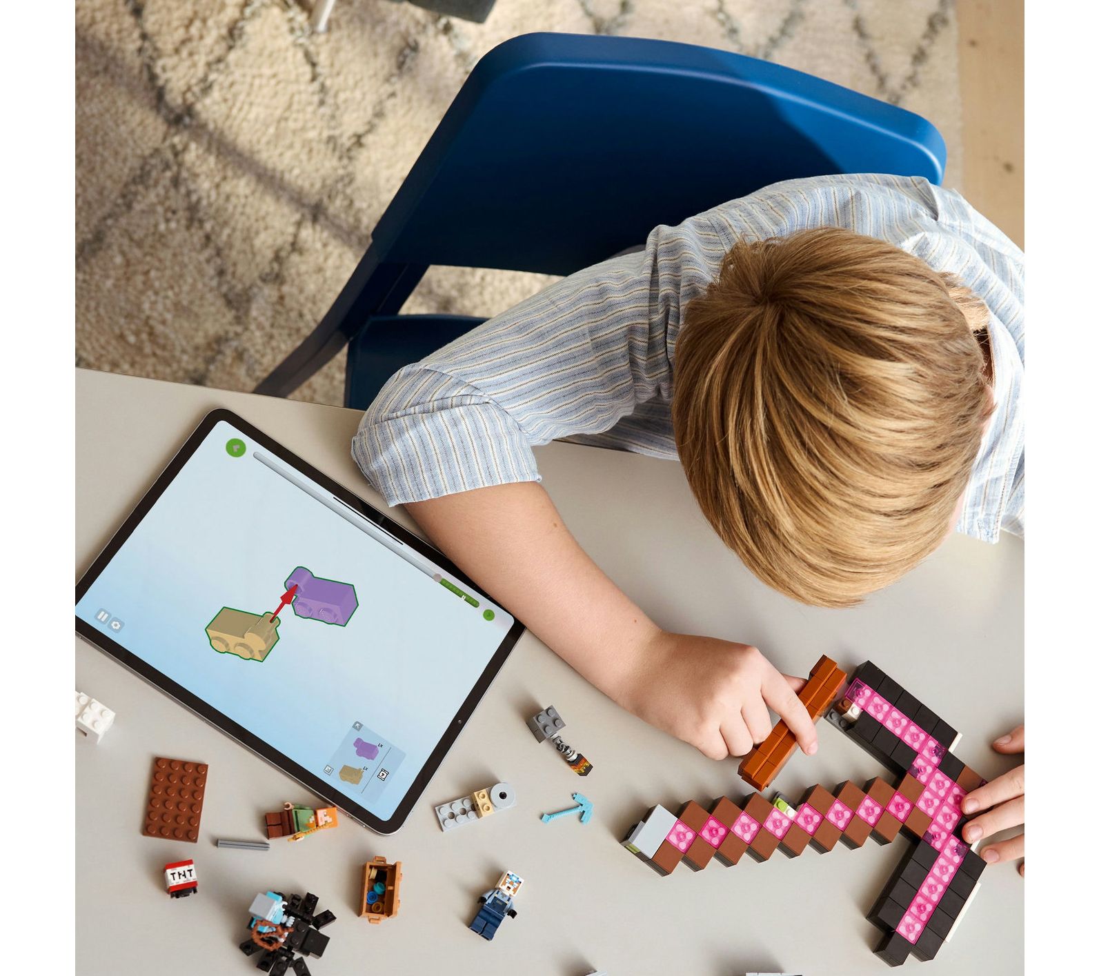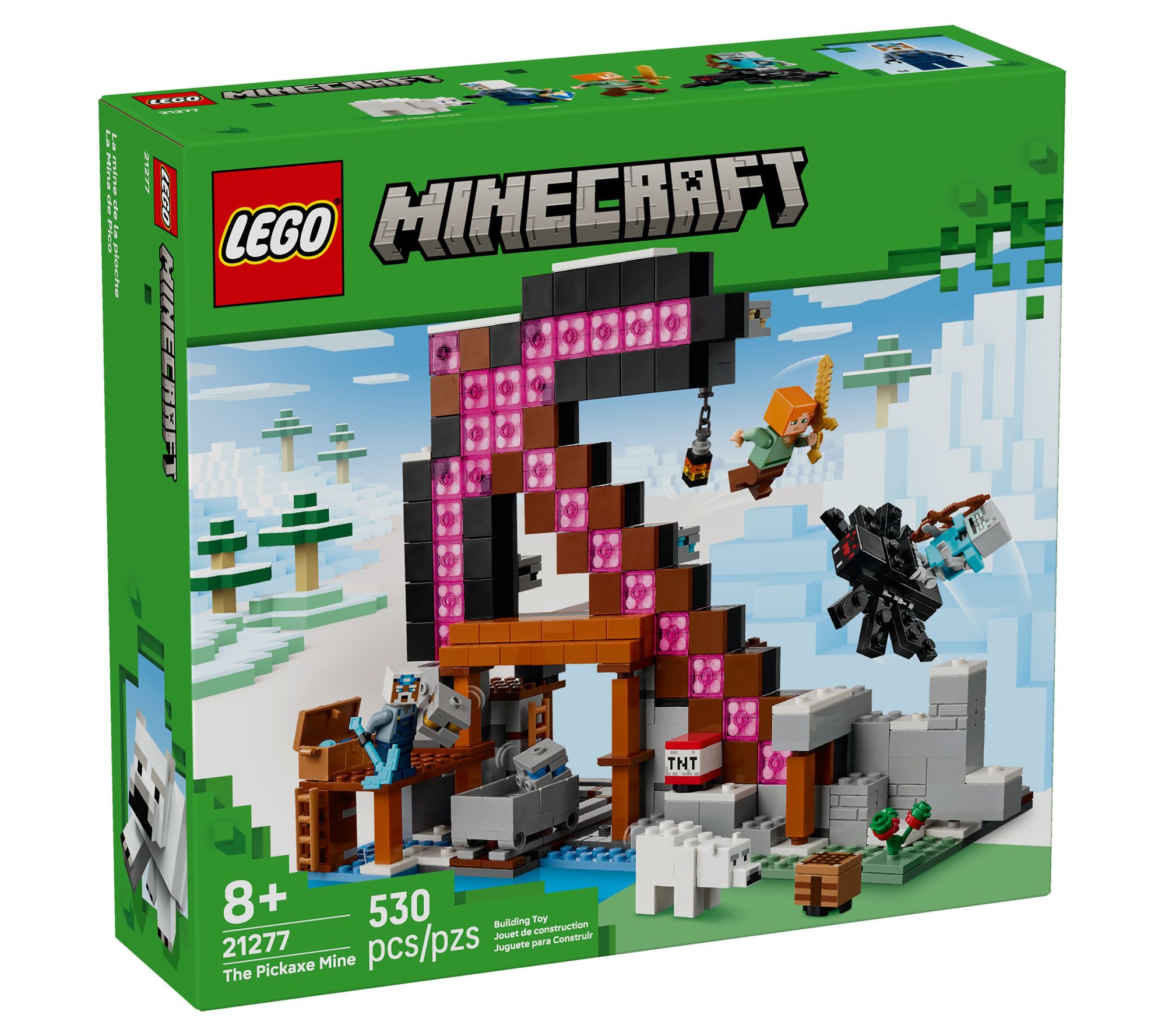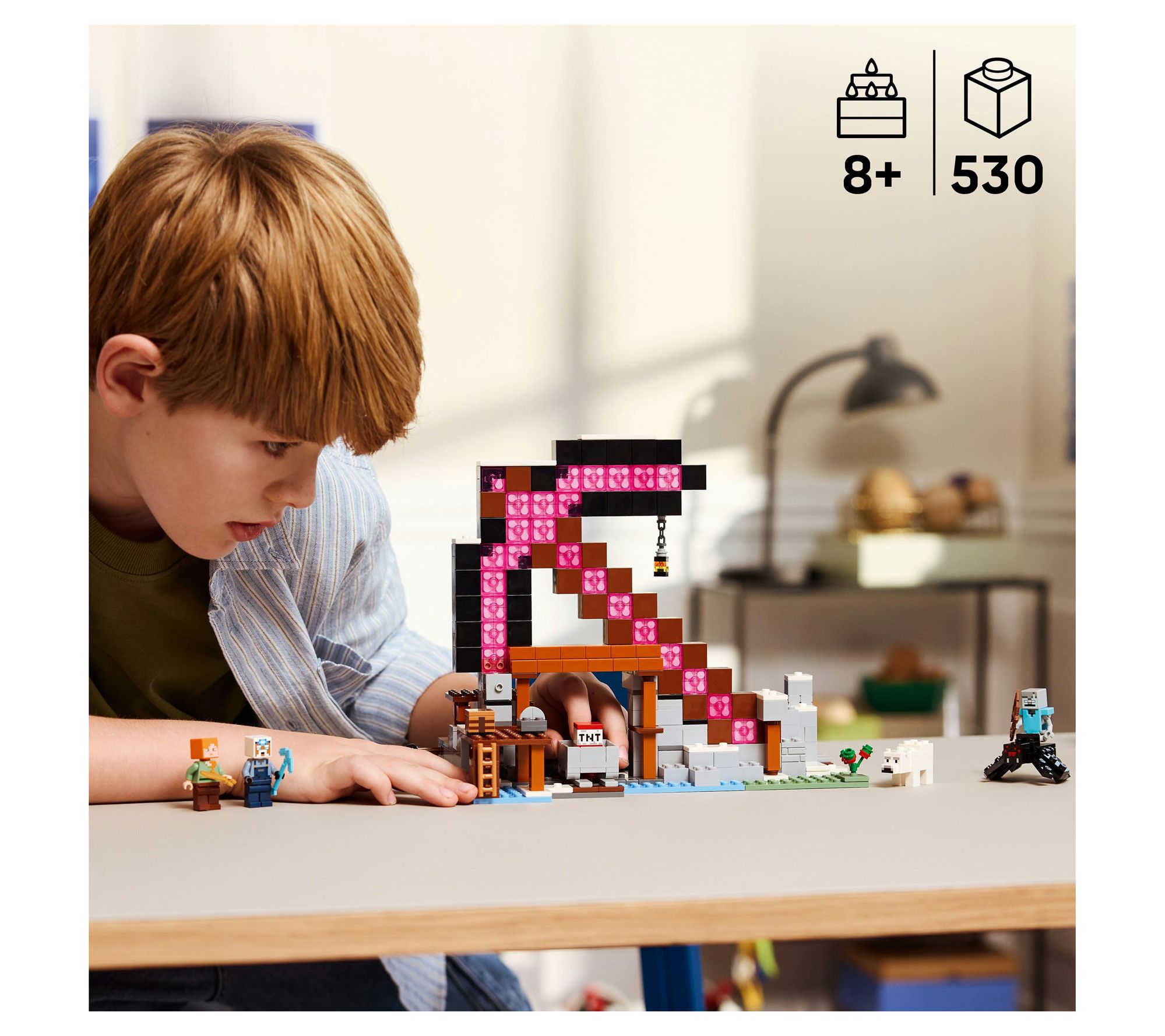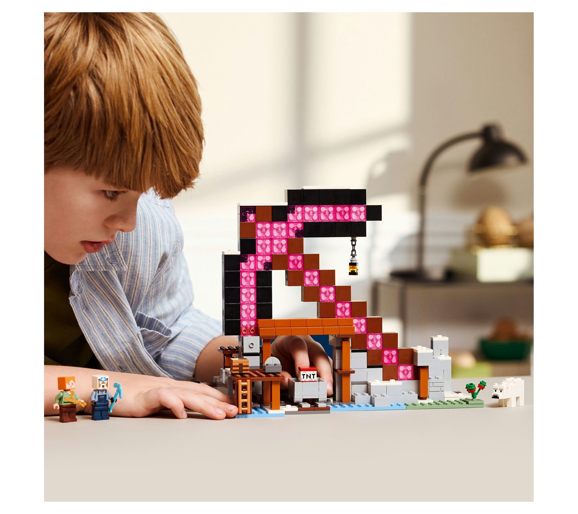 Adventure comes alive when you build and display this Minecraft Pickaxe Mine blocks set. Transport ore by cart, strategize to outsmart a lurking spider jockey, and use the TNT-filled cart to blast through walls, bringing pixelated gaming excitement into your home. A creative addition to a gamer's room, it's a fun way to build, play, and showcase Minecraft fandom. From LEGO.