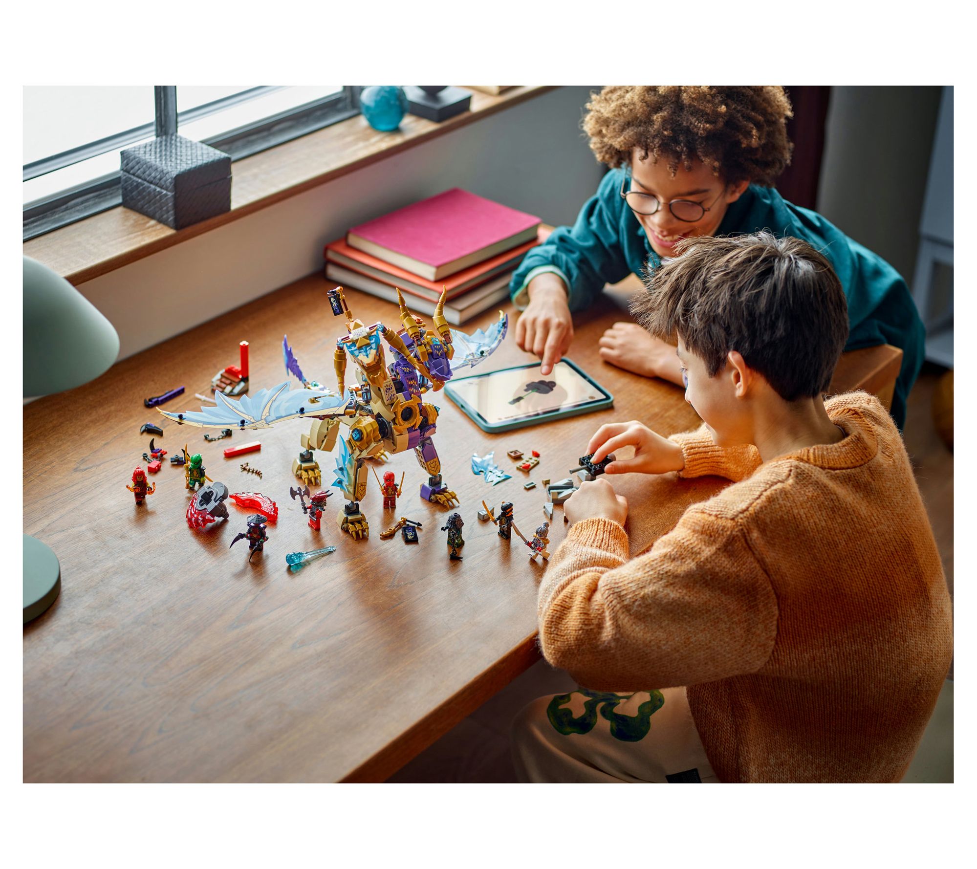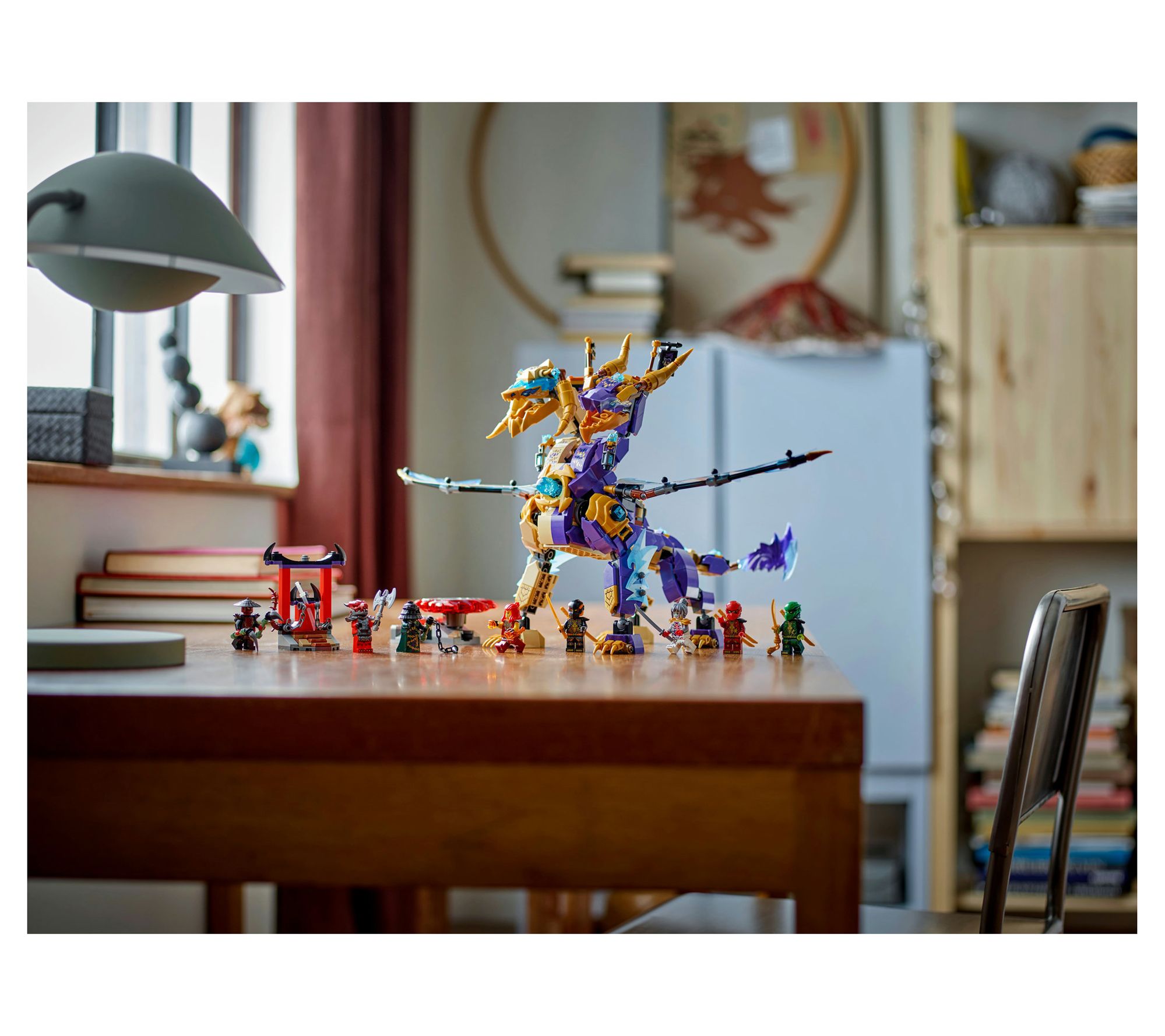 Swoop into action with the LEGO NINJAGO Arc Dragon of Focus. Engage in epic battles against the corrupt Dragonians, and fire darts from the dragon's chest to take down your foes. With posable features and a lever to move the wings, kids can recreate thrilling moments from NINJAGO Dragons Rising. From LEGO.