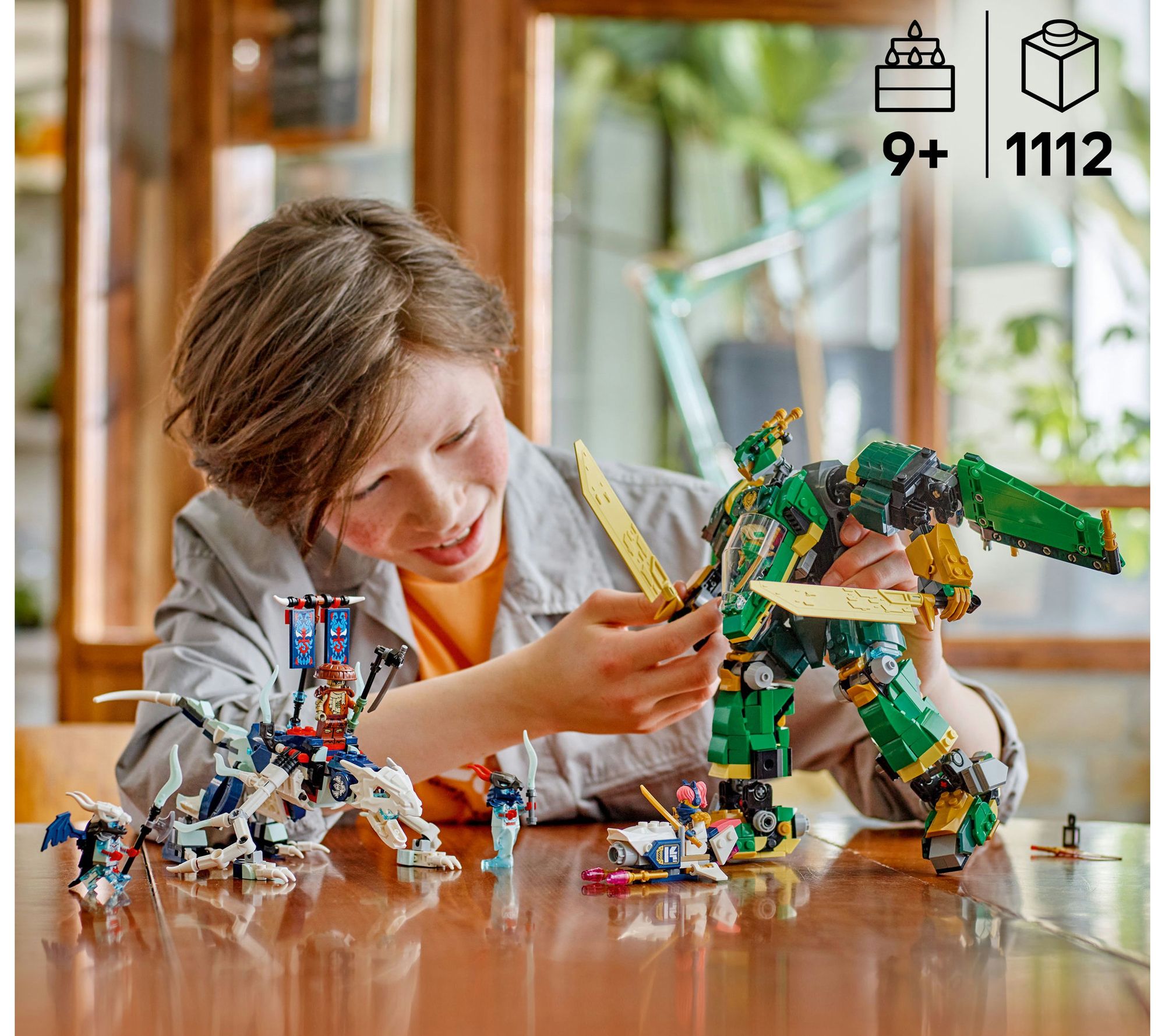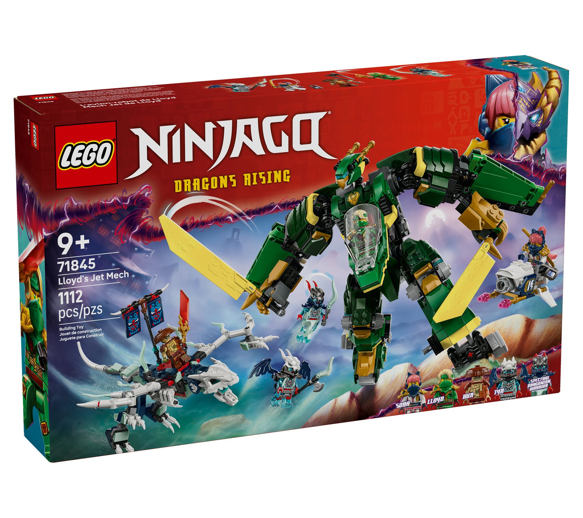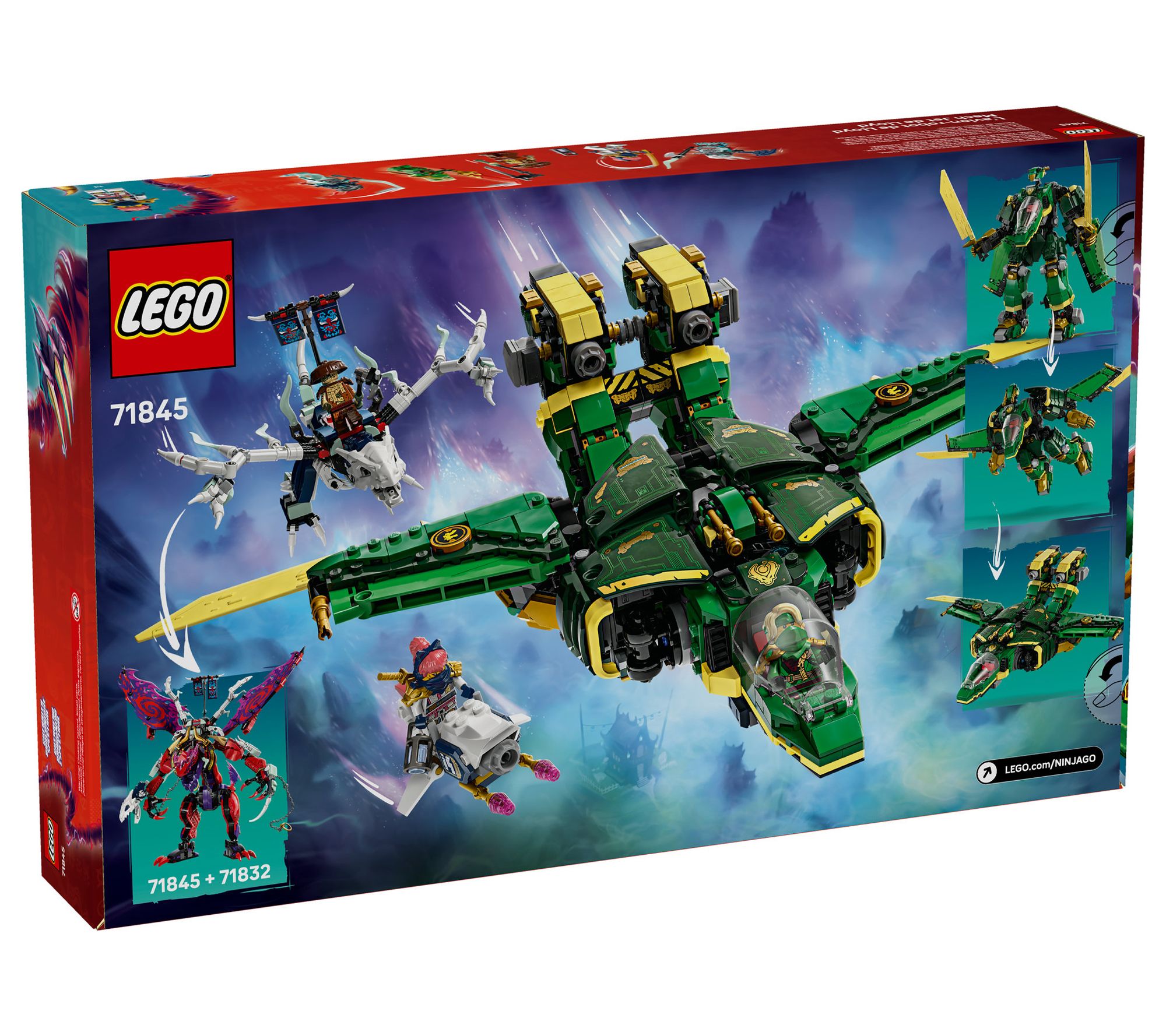 High-flying adventures await as you build and transform this LEGO NINJAGO blocks set from a sword-wielding mech into a jet ready for action. Recreate dramatic scenes from the Dragons Rising TV show and lead the team into battle against fierce enemies -- complete with detailed minifigures, a motorbike for dramatic chases, and a menacing dragon for epic showdowns. From LEGO.