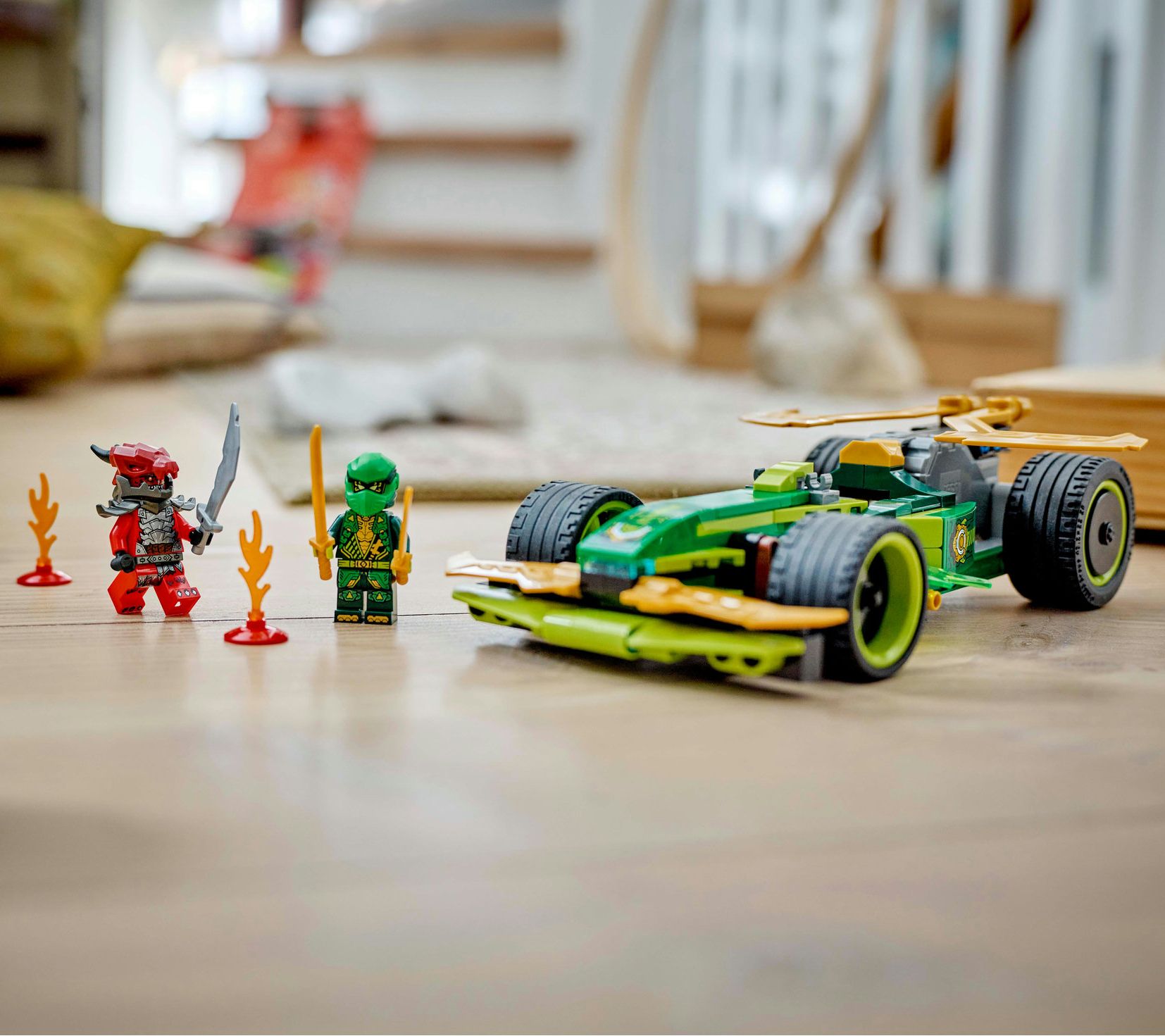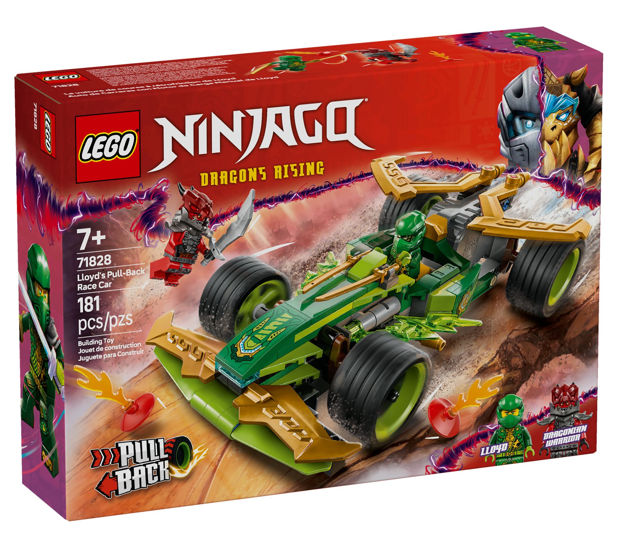 Kids can help Lloyd overcome the feral Dragonian -- they'll speed into action with the pull-back race car. Equipped with two golden katana swords, Lloyd is ready for an epic battle against the Dragonian Warrior to protect the NINJAGO world. Simply pull back the car and watch it zoom forward at incredible speed. From LEGO NINJAGO.