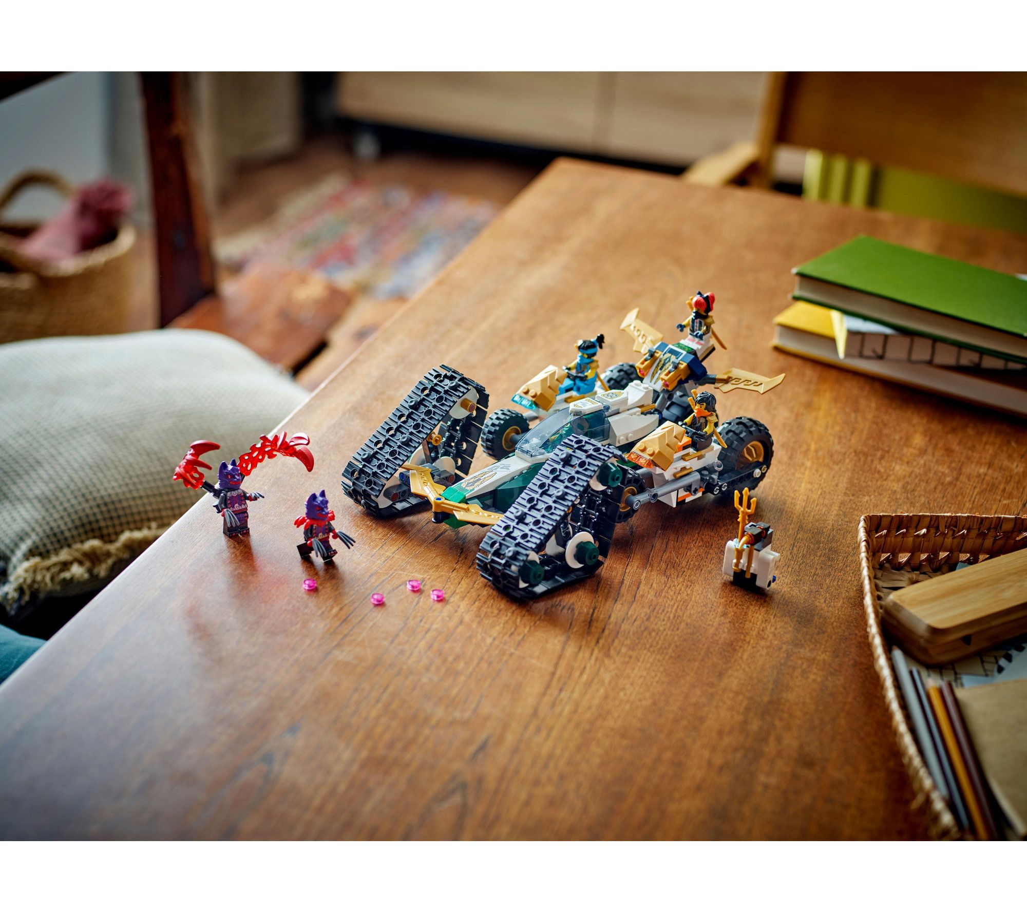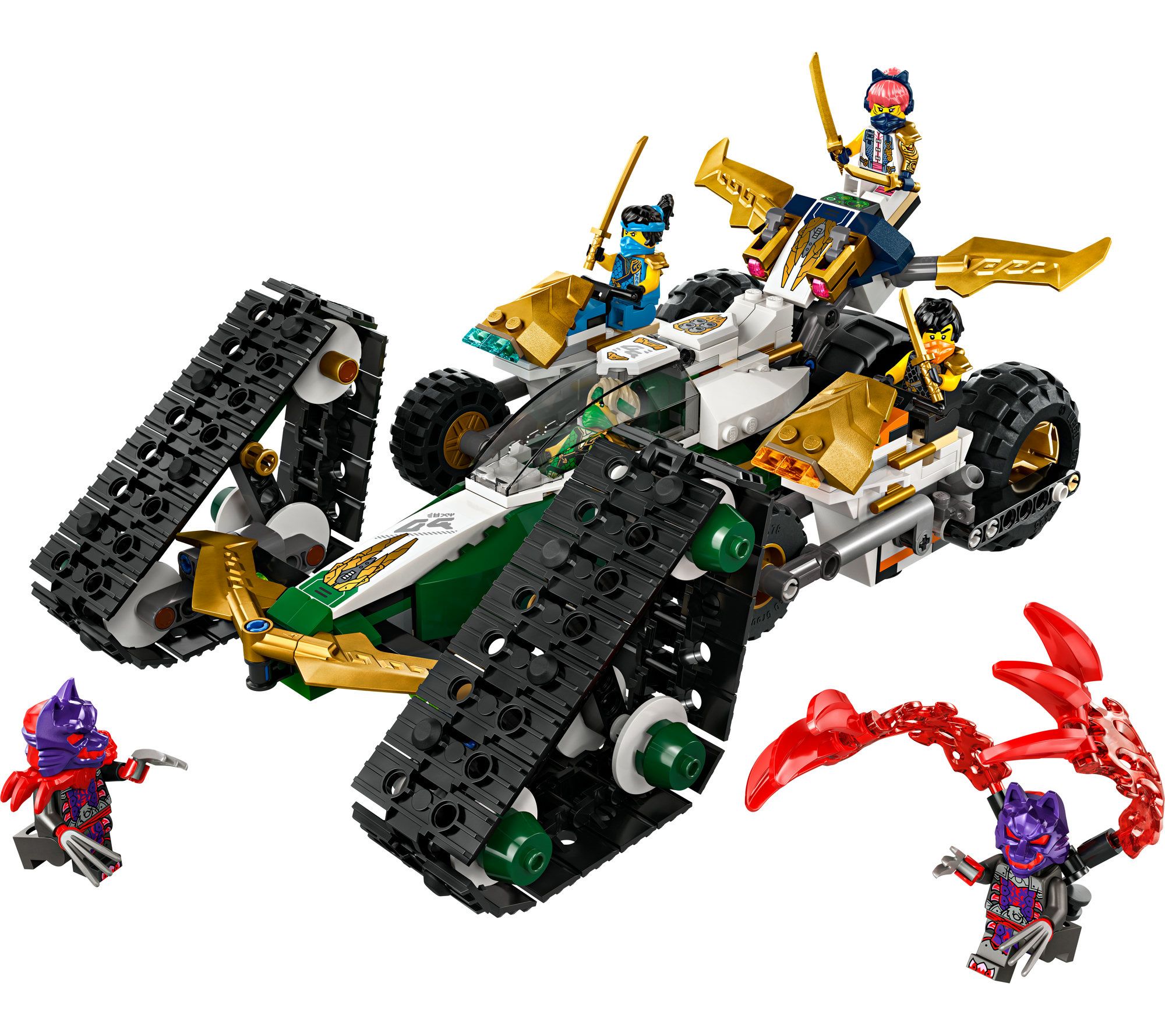 Team up with the ninja heroes and face off against Lord Ras's evil crew with the LEGO NINJAGO Ninja Team combo vehicle. This versatile set lets you battle with a massive combo vehicle or split into four smaller vehicles for strategic attacks. It's perfect for fans of the NINJAGO Dragons Rising TV show, both young and older. From LEGO.