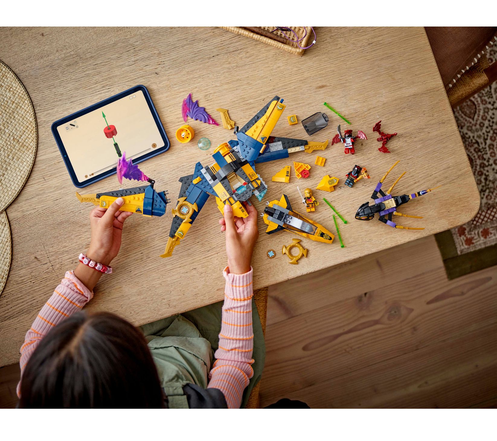 Let kids take to the skies with the thrilling LEGO NINJAGO Ras and Arin's Super Storm Jet! They can join forces with Arin as he navigates the turbulent skies, using the jet's spring-loaded shooters to fend off attacks, or battle alongside Ras with his detachable, dragon-headed drone to combat Dragonian Warrior and his dragon critter. This action-packed set is perfect for any young ninja enthusiast. From LEGO.
