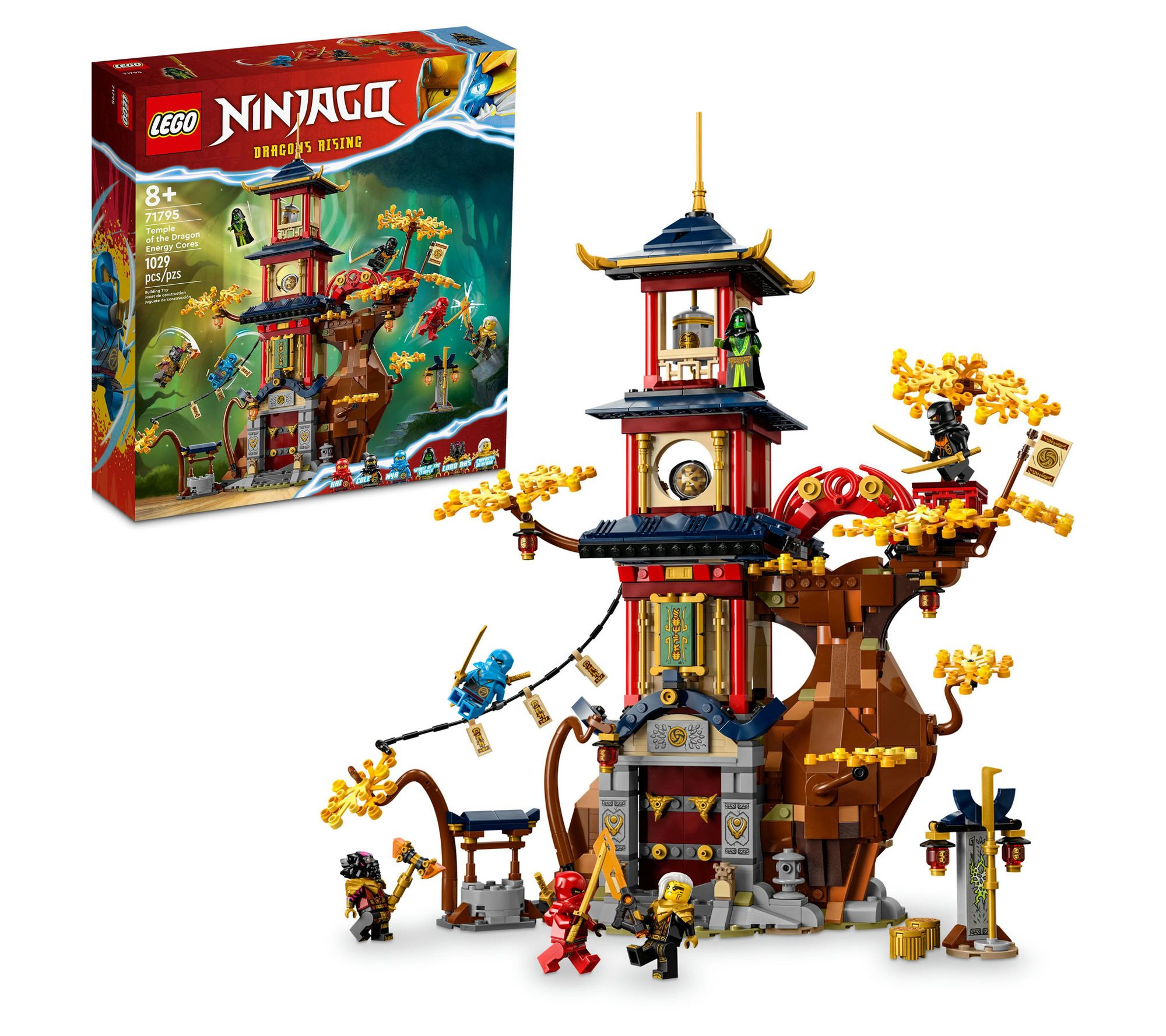 Embark on an epic adventure with the LEGO NINJAGO Temple of the Dragon Energy Cores playset, where imaginative kids can recreate thrilling scenes from the NINJAGO Dragons Rising TV series. This detailed four-floor temple, entwined with a magical tree, is filled with hidden traps and comes alive with six minifigures, including Cole, Kai, and Nya, each wielding dual golden katanas. Perfect for NINJAGO fans, this set promises endless imaginative play and makes a striking display piece. From LEGO.