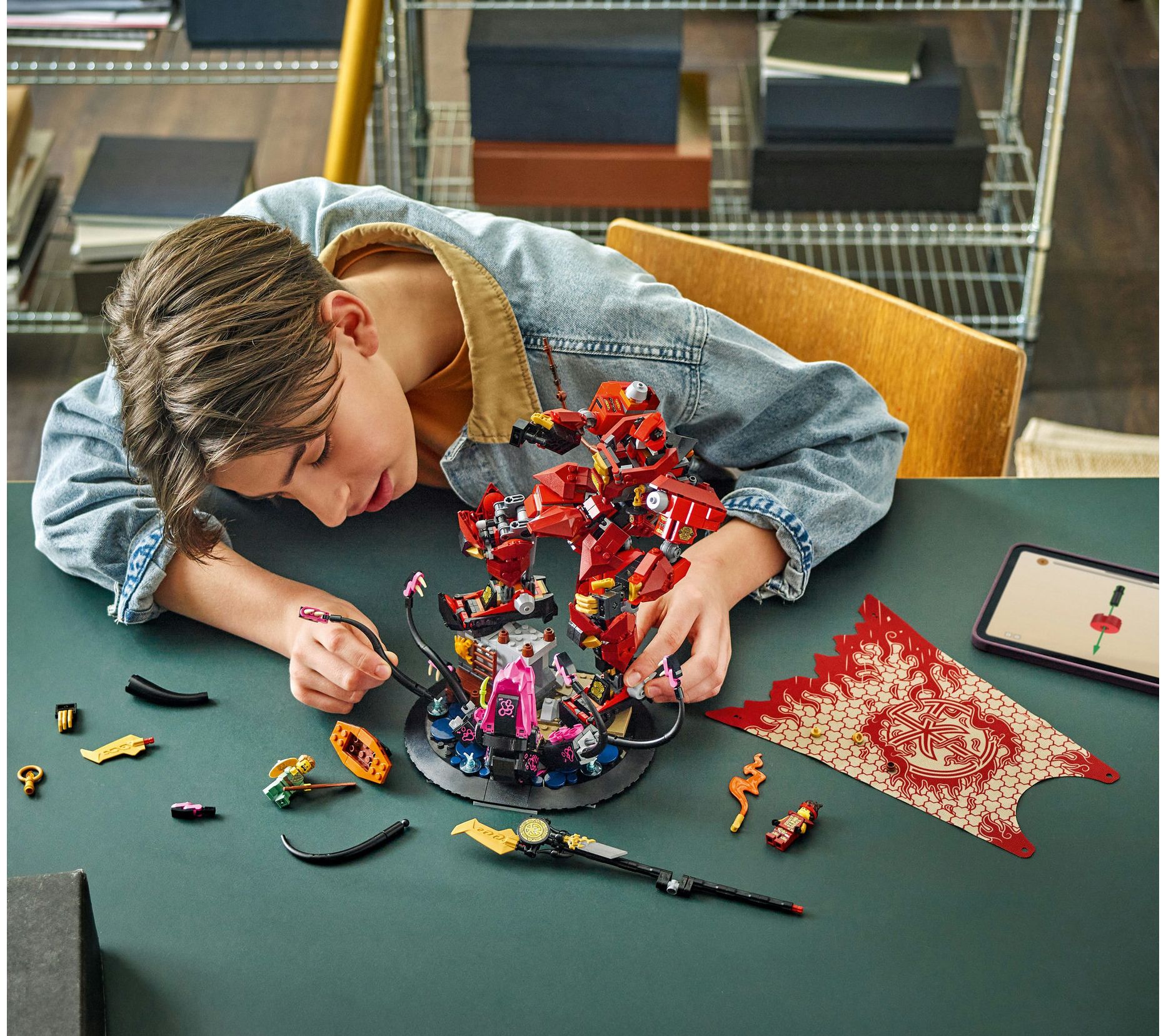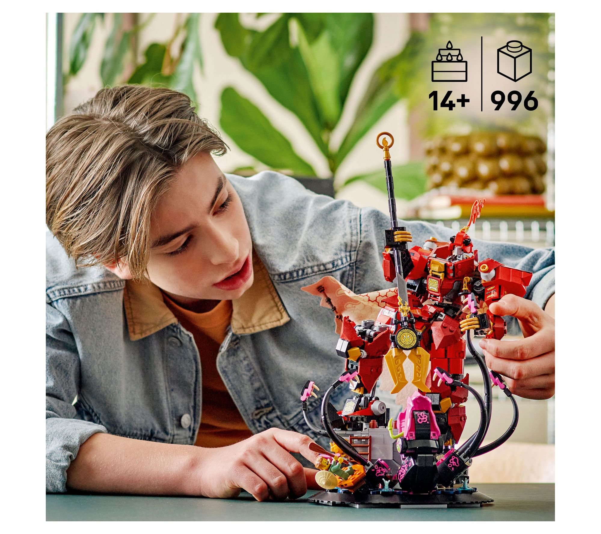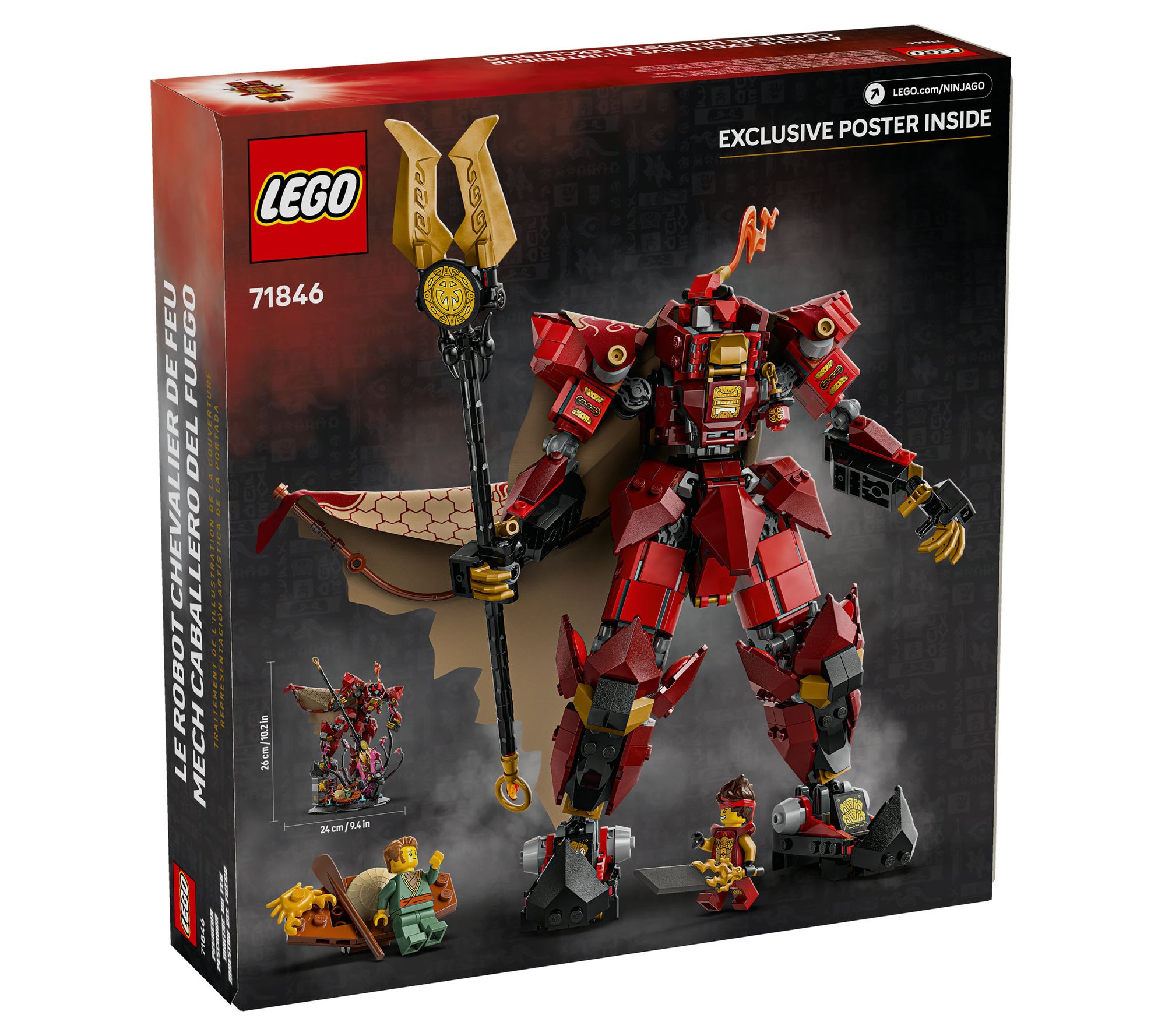 Excitement fills the air as LEGO NINJAGO fans recreate epic showdowns with The Fire Knight Mech building kit -- display it in your room or detach it from the base to dive into thrilling ninja battles. Dramatic details and posable features bring the action to life, while Kai and a fisherman minifigure ignite endless storytelling adventures. From LEGO.