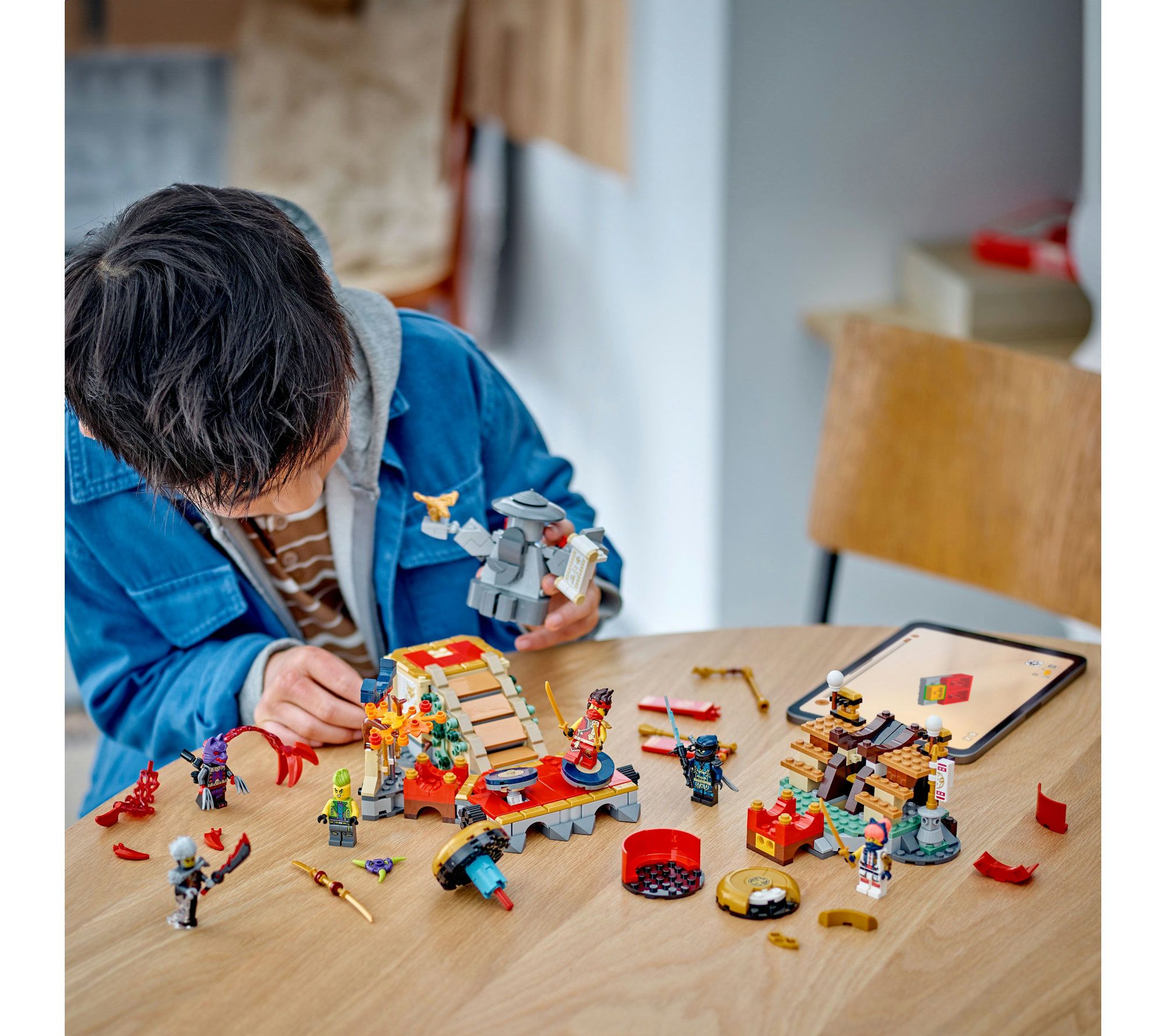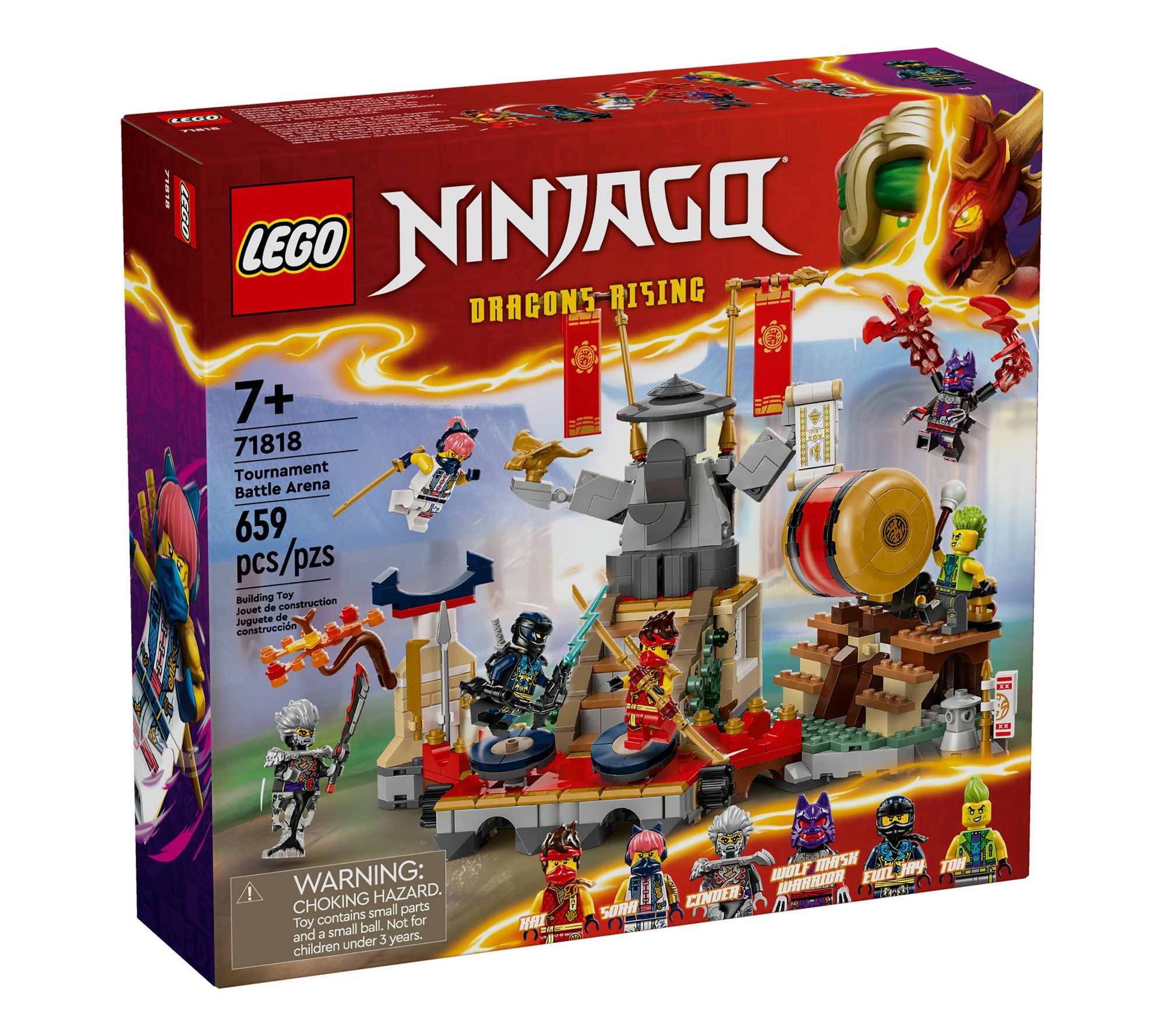 Step into the LEGO NINJAGO Tournament Battle Arena and join forces with Kai and Sora to face off against evil foes like Cinder and Evil Jay. This 659-piece set brings the action of the NINJAGO Dragons Rising TV show to life for your child with interactive features like moving platforms, a rolling drum, and collapsing stairs. From LEGO.
