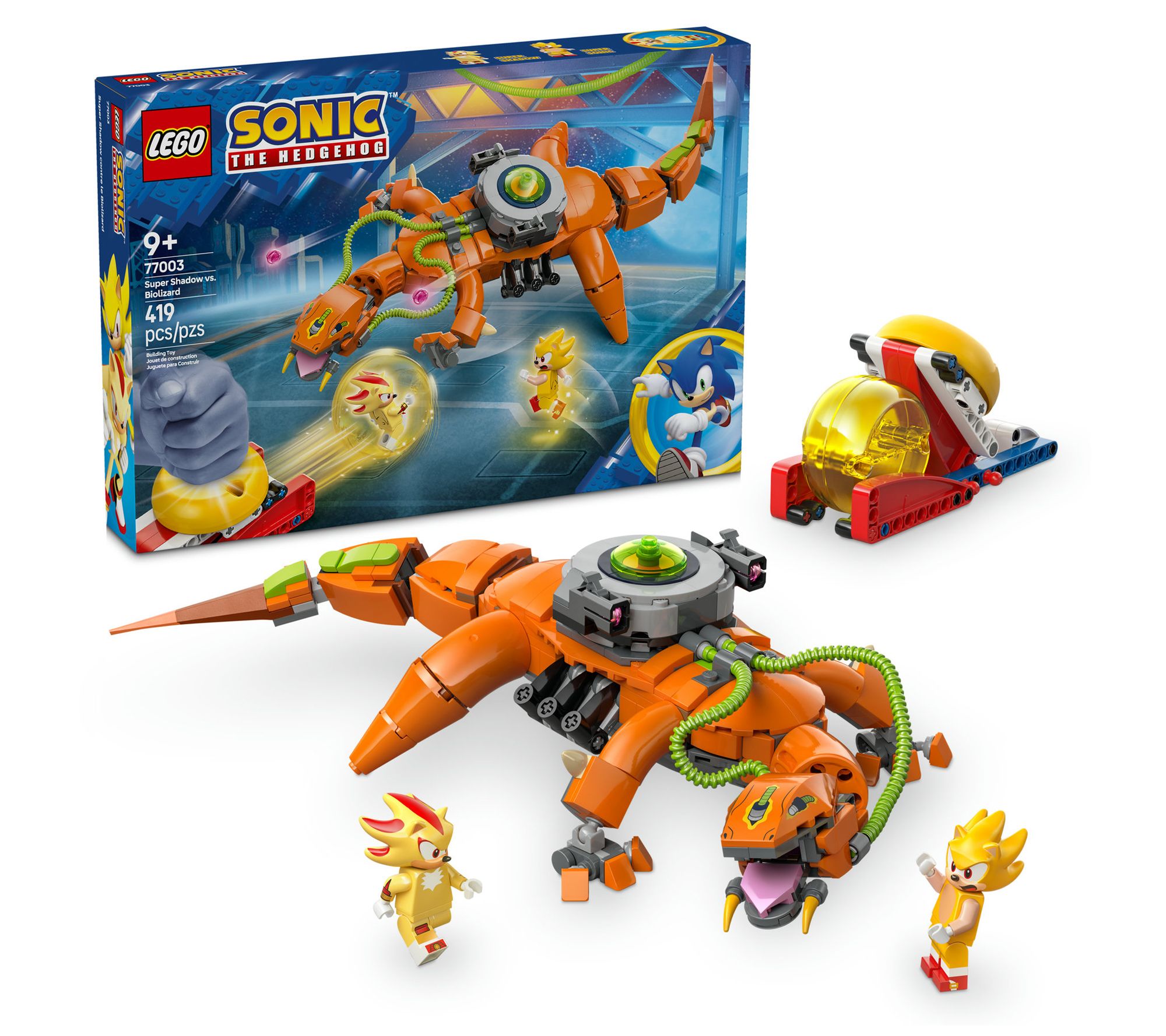 Who's faster, Super Shadow or Super Sonic? With the LEGO Sonic the Hedgehog Super Shadow vs. Biolizard set, your young builder can find out! Kids can load up Super Shadow or Super Sonic into the speed sphere launcher and help defend the Space Colony ARK from the Biolizard's stud launchers, tail, and powerful jaws. Aiming for its side, they can knock off the energy pod and recover the Chaos Emerald. From LEGO.