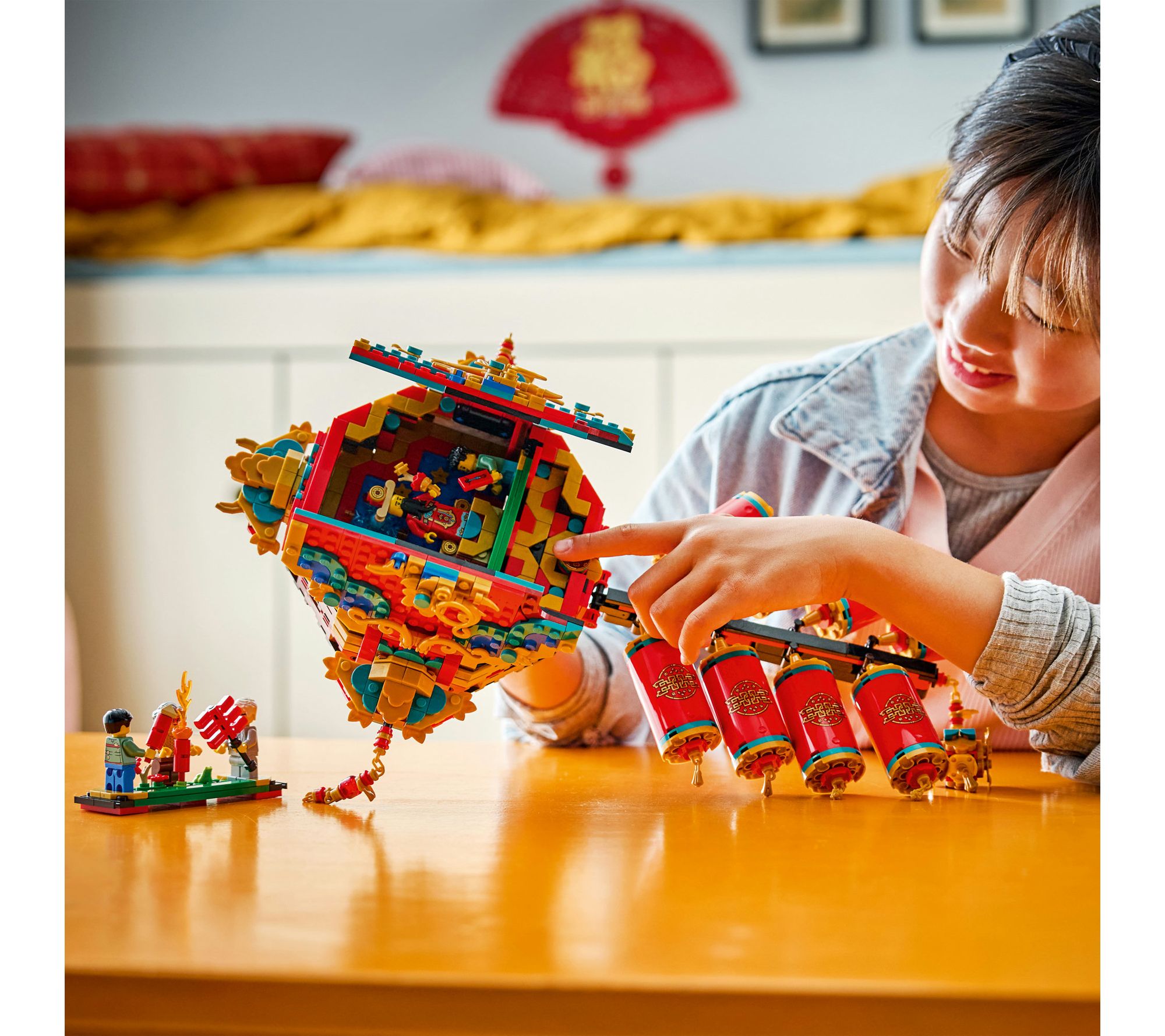 Celebrate special moments with this playful blocks set that lets families build, decorate, and share in the excitement of the Spring Festival. Create wall art that captures festive scenes -- pressing a button reveals a joyful firework display or a heartwarming family gathering -- while the included minifigures spark imagination and storytelling for all ages. From LEGO.