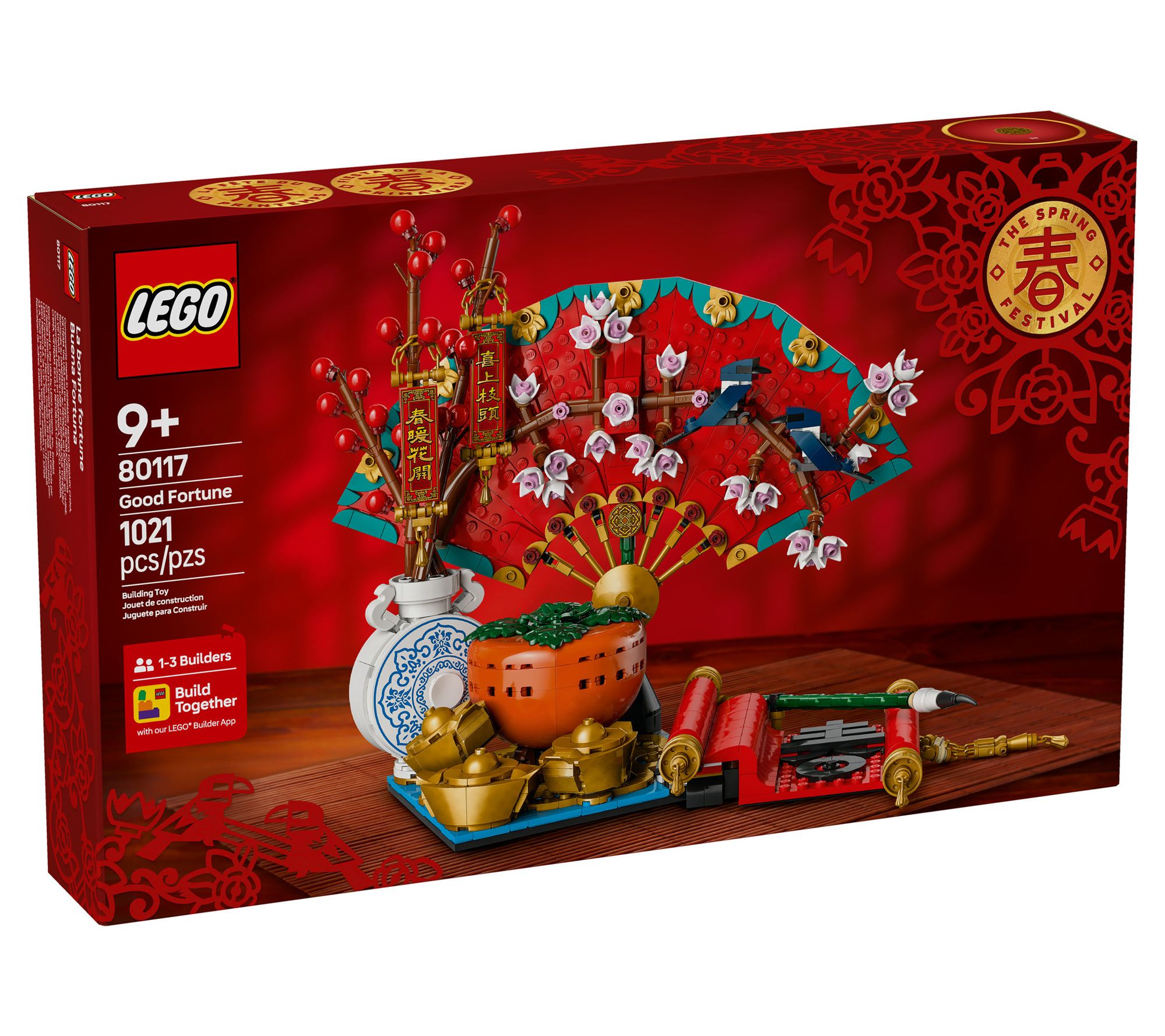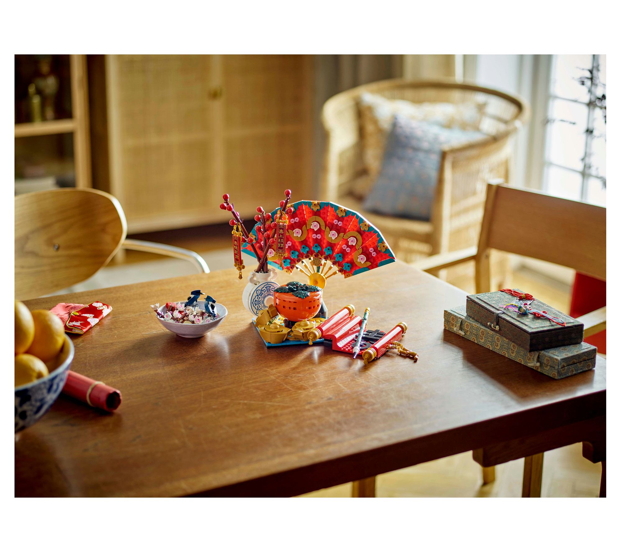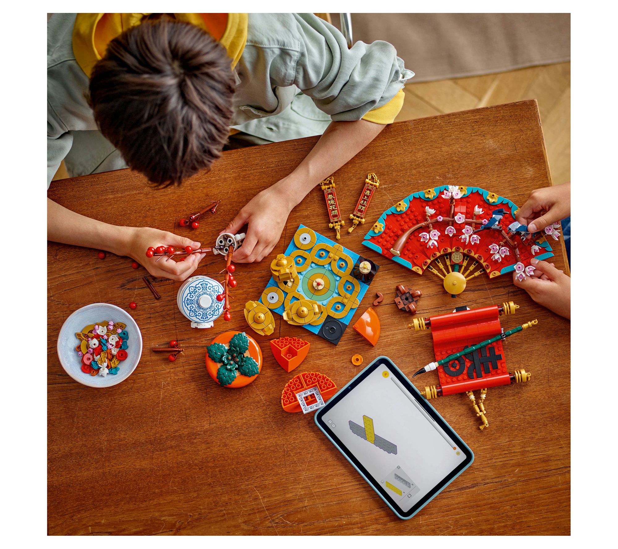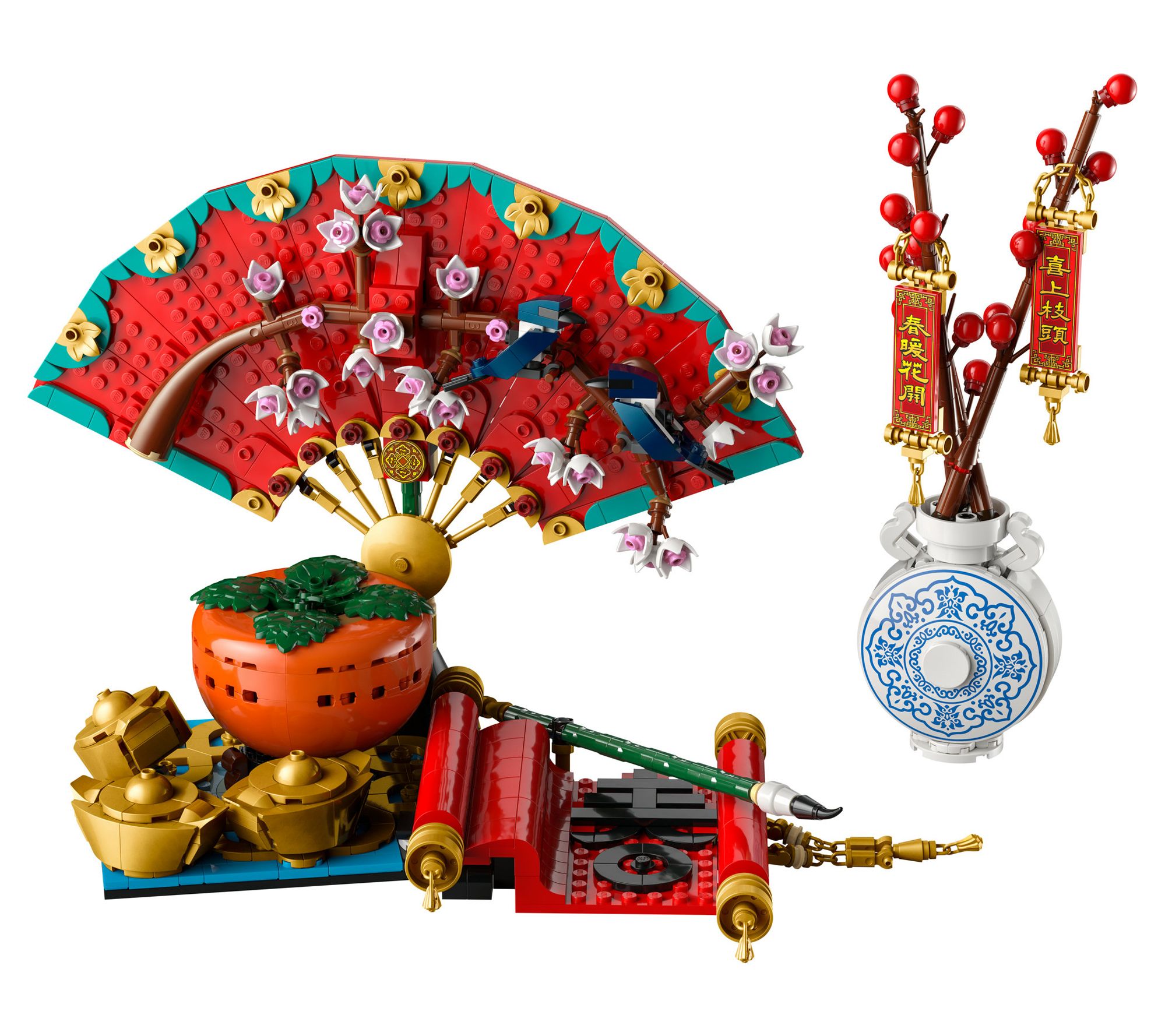 Welcome the new year with the LEGO Spring Festival Good Fortune Building Set. Kids can create a display symbolizing love, good health, prosperity, and joy, featuring a beautiful fan, fruit, golden ingots, and a scroll with Chinese text meaning 'spring.' Perfect for fun family activities and learning cultural traditions, this set offers two decorative build options and includes removable objects so you can customize your display. From LEGO.