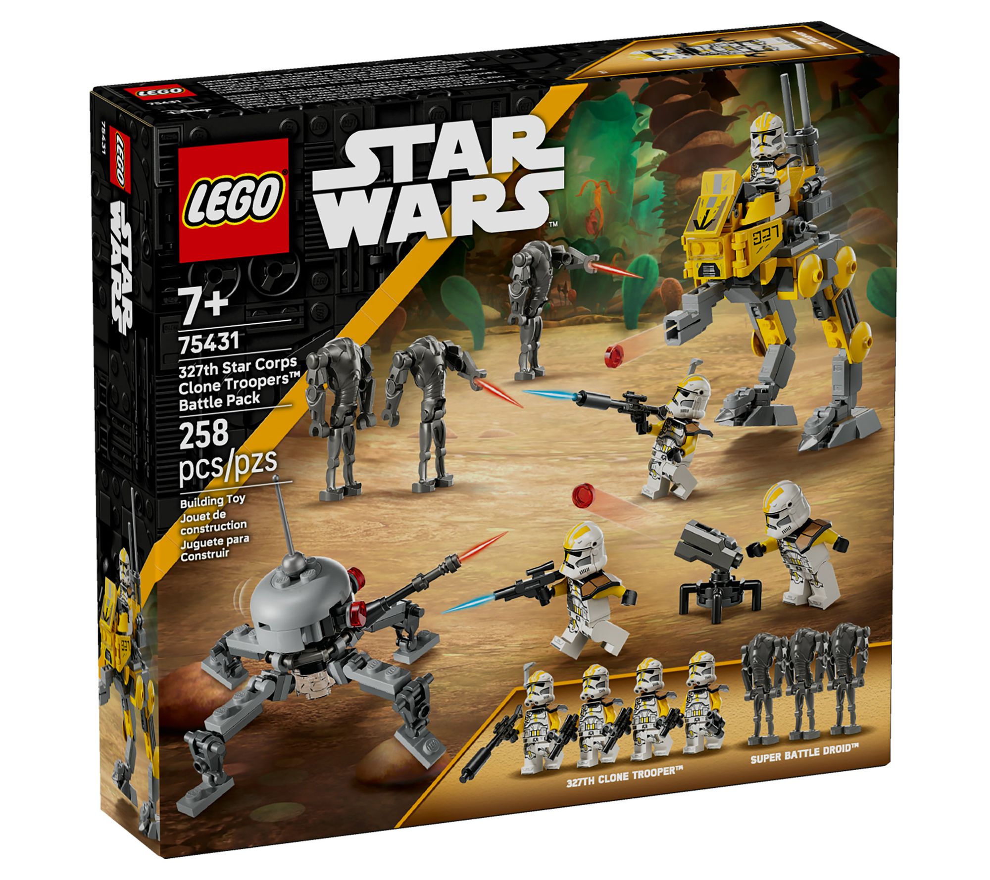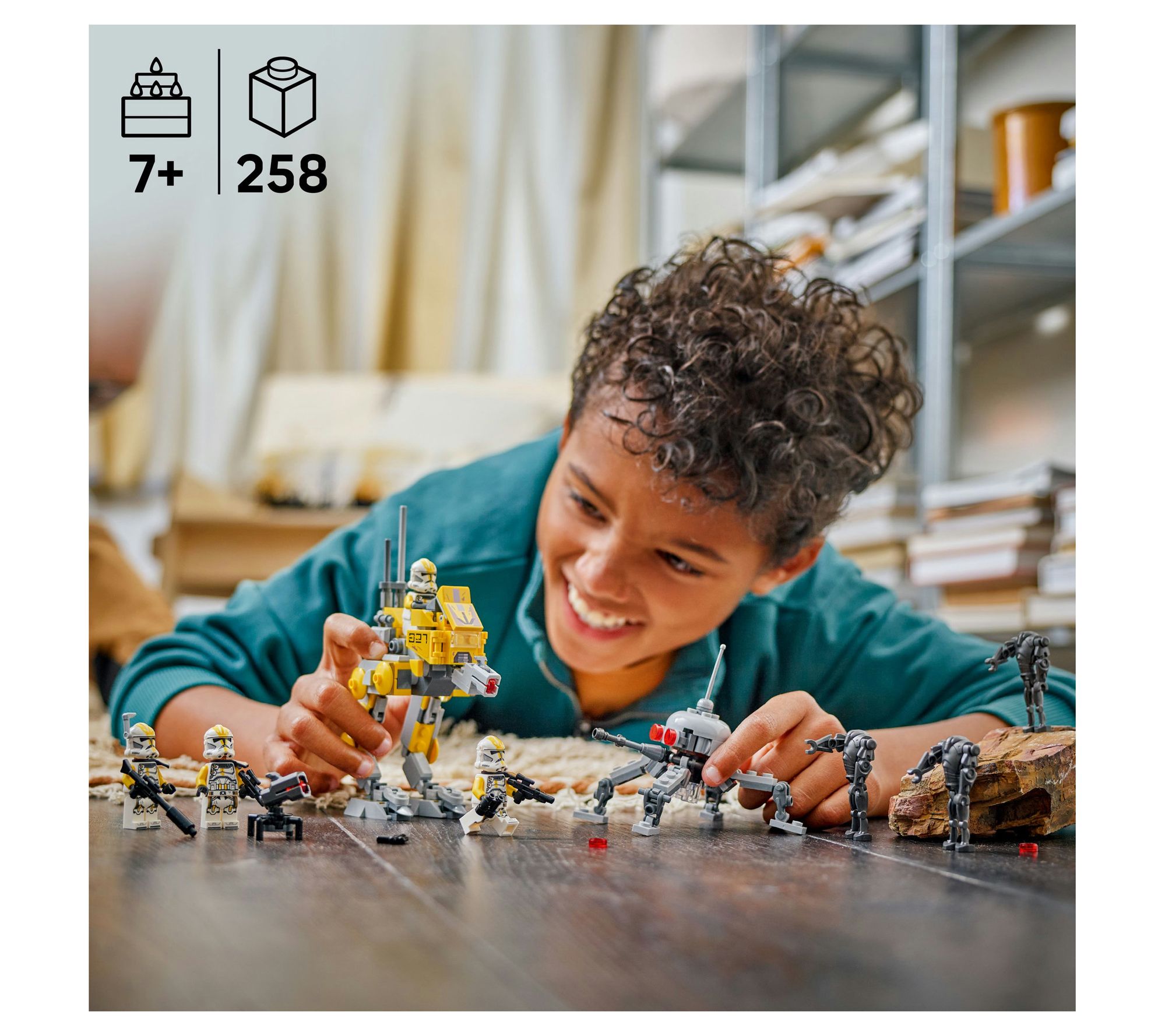 Bring epic Star Wars: Revenge of the Sith action to your home by building a troop of 327th Star Corps Clone Troopers with this LEGO blocks set. Gear up for intense battles as you deploy the AT-RT walker to challenge Super Battle Droids or display the minifigures and vehicles as part of a collection. From LEGO.