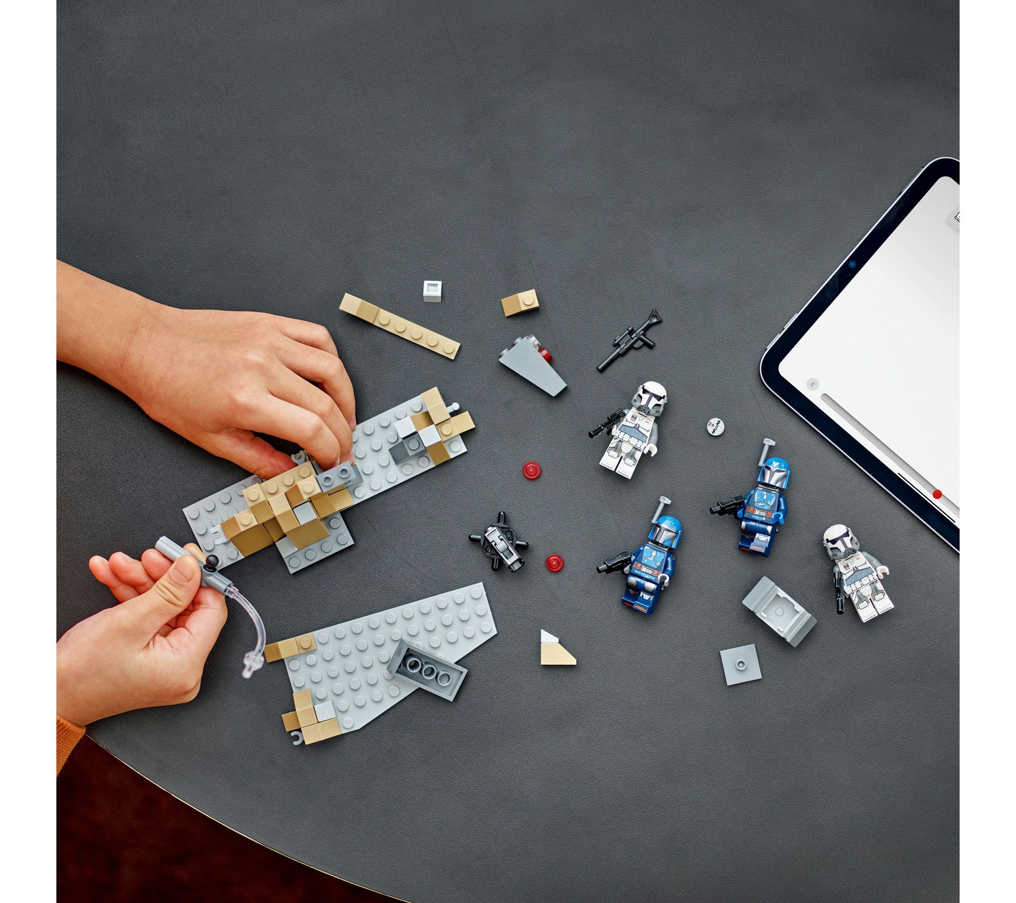 Relive the thrilling ambush on Mandalore with the LEGO Star Wars battle pack set. Your child can create new adventures with the Mandalorian Nite Owl, Mandalorian Warrior, and Imperial Commandos, each equipped with blasters and jetpacks. Use the LEGO Builder app to visualize your construction as you build. From LEGO.