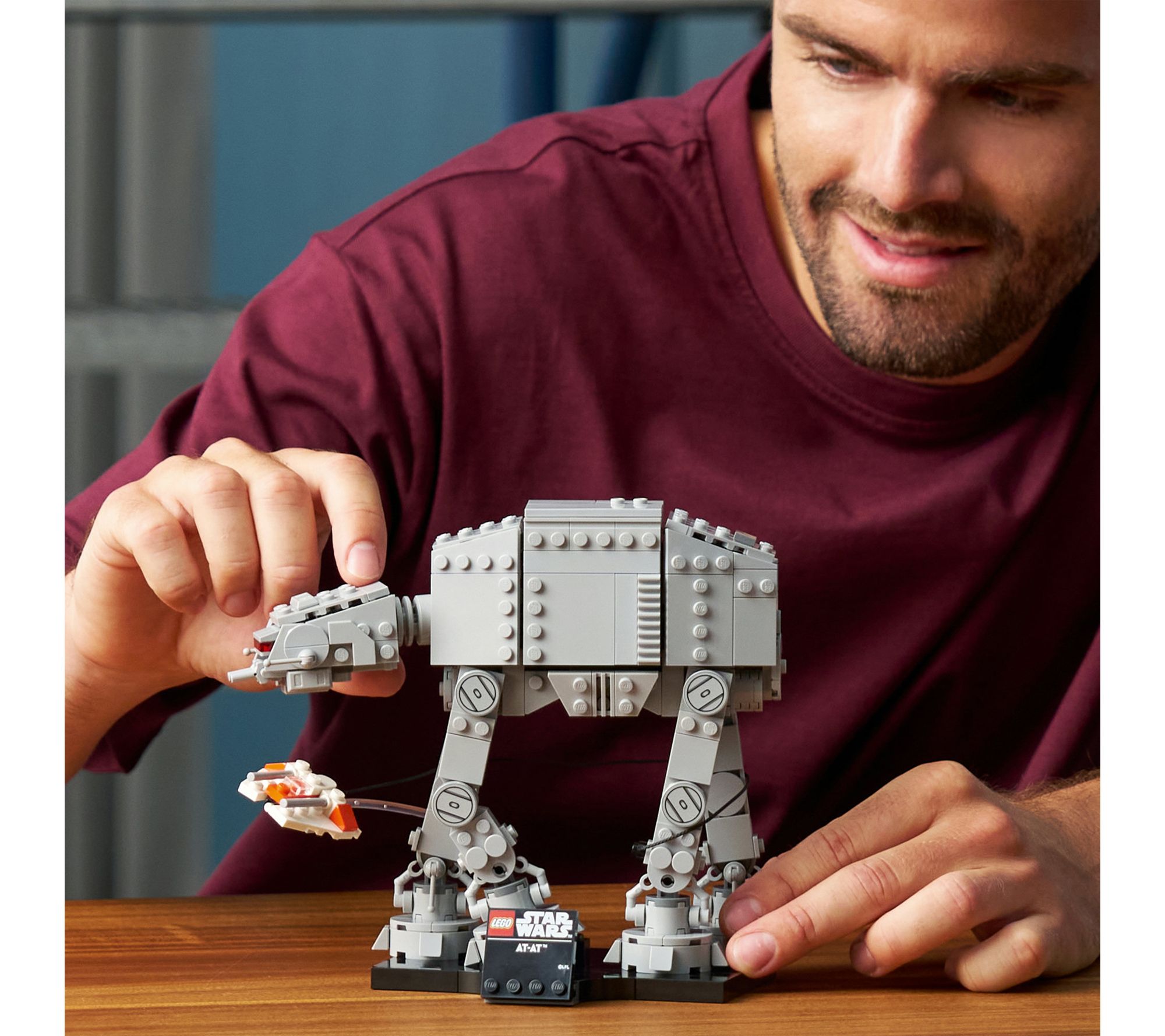 Bring the epic Battle of Hoth into your home with this iconic AT-AT Walker blocks set, designed for adult fans and collectors. Recreate a dramatic moment from Star Wars: The Empire Strikes Back, featuring a Snowspeeder in motion and a nameplate-ready display stand. From LEGO.
