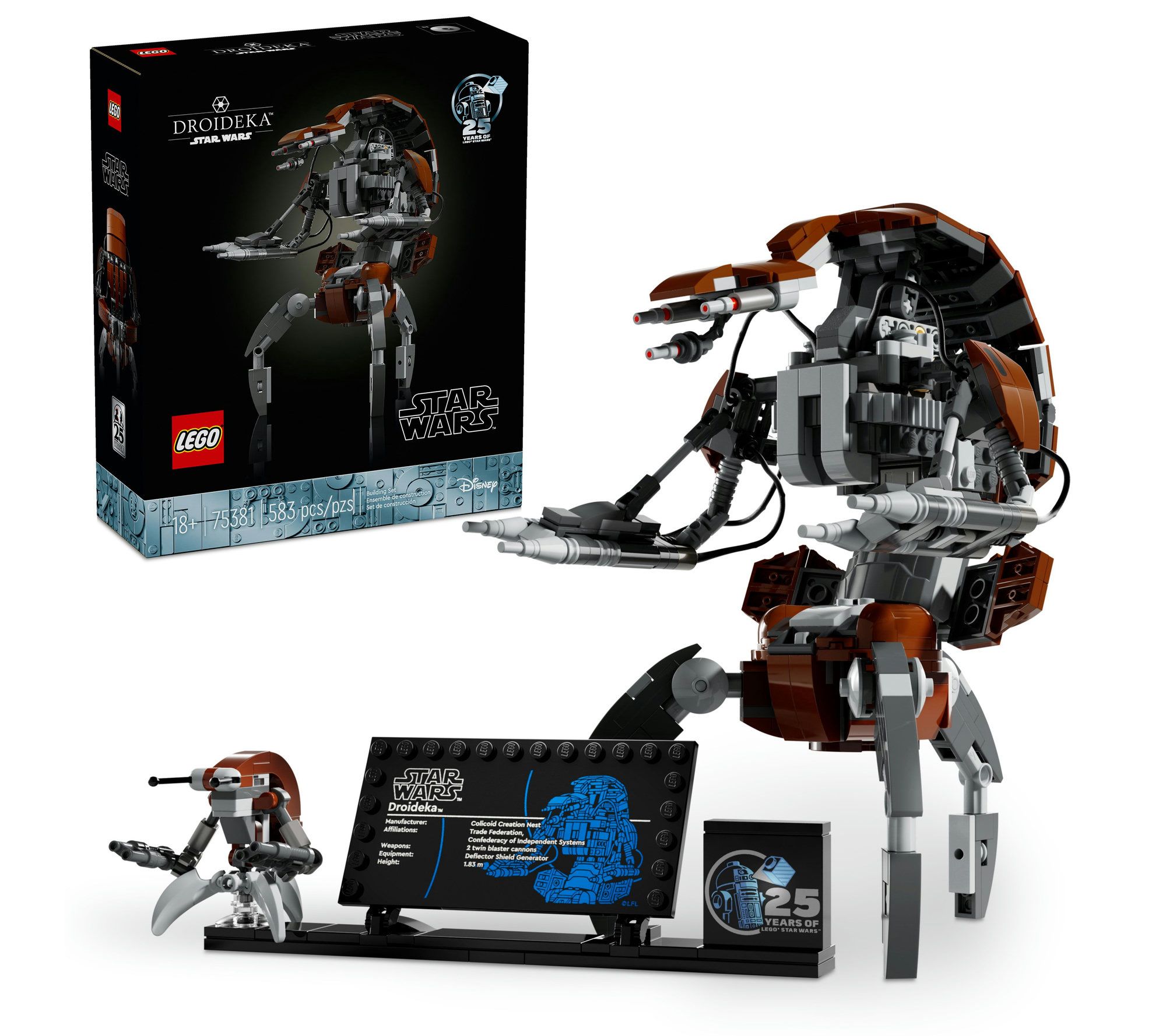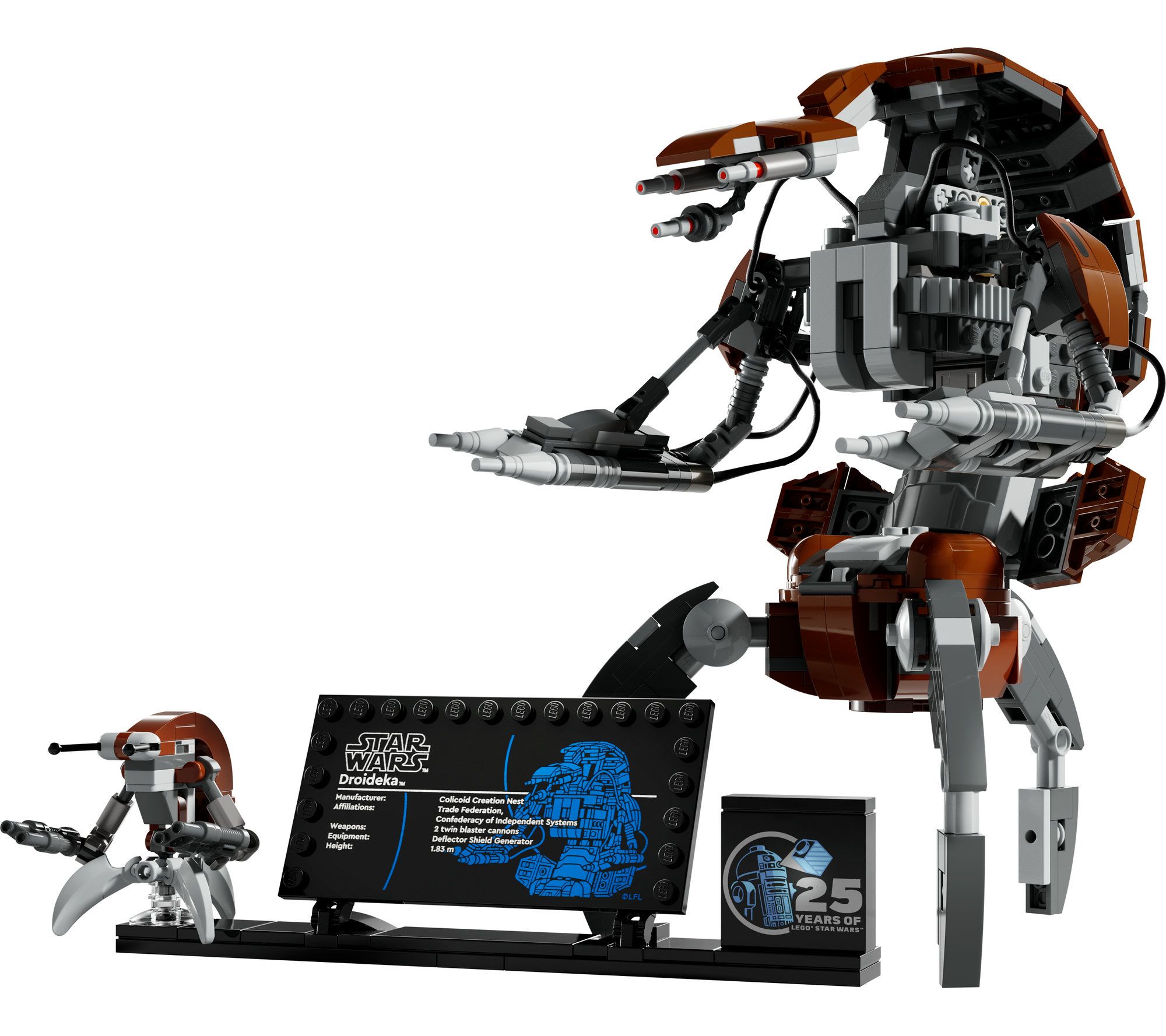Build nostalgia for Star Wars: The Phantom Menace with the LEGO Star Wars Droideka Building Set. This 583-piece set lets you create a realistic Droideka destroyer droid with movable arms and a ball shape transformation. Perfect for display, it includes a stand with an information plaque and a small LEGO droid figure. From LEGO.