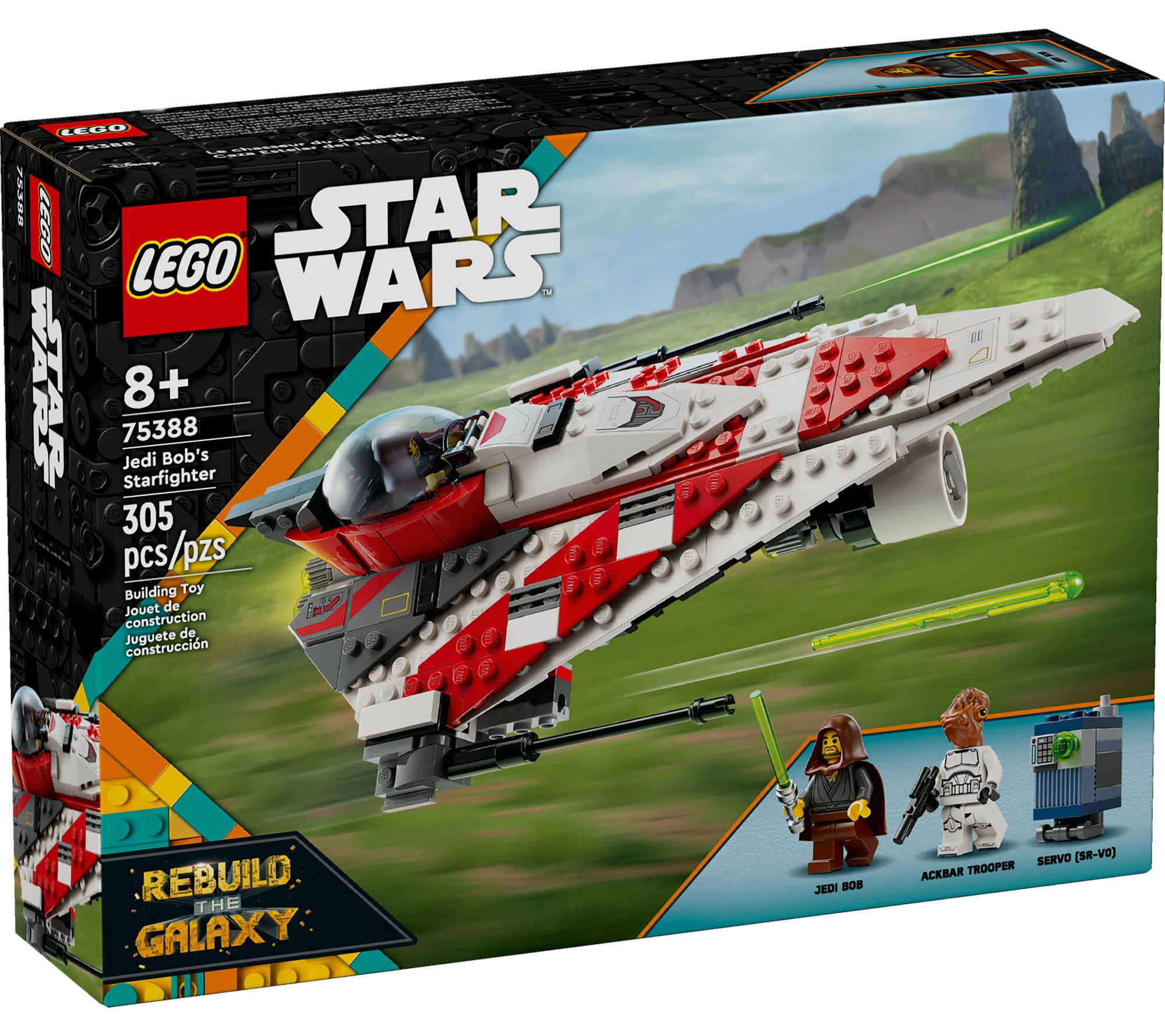 Team up with the legendary Jedi Bob in his awesome starfighter, as seen in the LEGO Star Wars: Rebuild the Galaxy Disney+ special. Fire the spring-loaded shooters and battle enemies with his lightsaber. Celebrate your mission with playful accessories like a blue milk carton and banana. From LEGO.