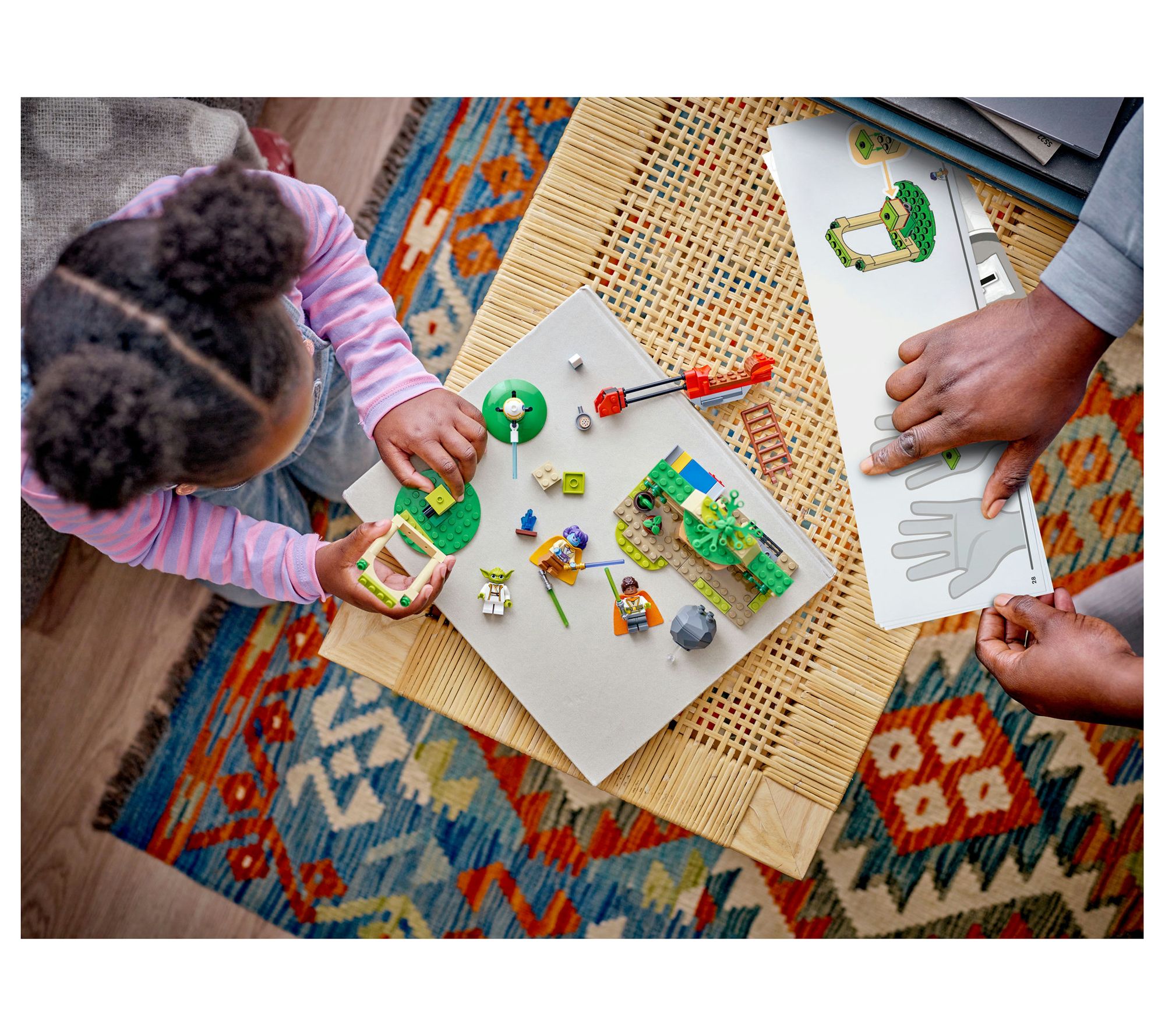 Introduce your child to the excitement of the LEGO Star Wars universe with the Tenoo Jedi Temple building set. This starter kit features a temple with a unique 'levitating' rock function and a detailed interior that encourages imaginative play. It comes with three LEGO minifigures, including Lys Solay, Kai Brightstar, and the iconic Master Yoda, making it an ideal gift for young Star Wars fans. From LEGO.