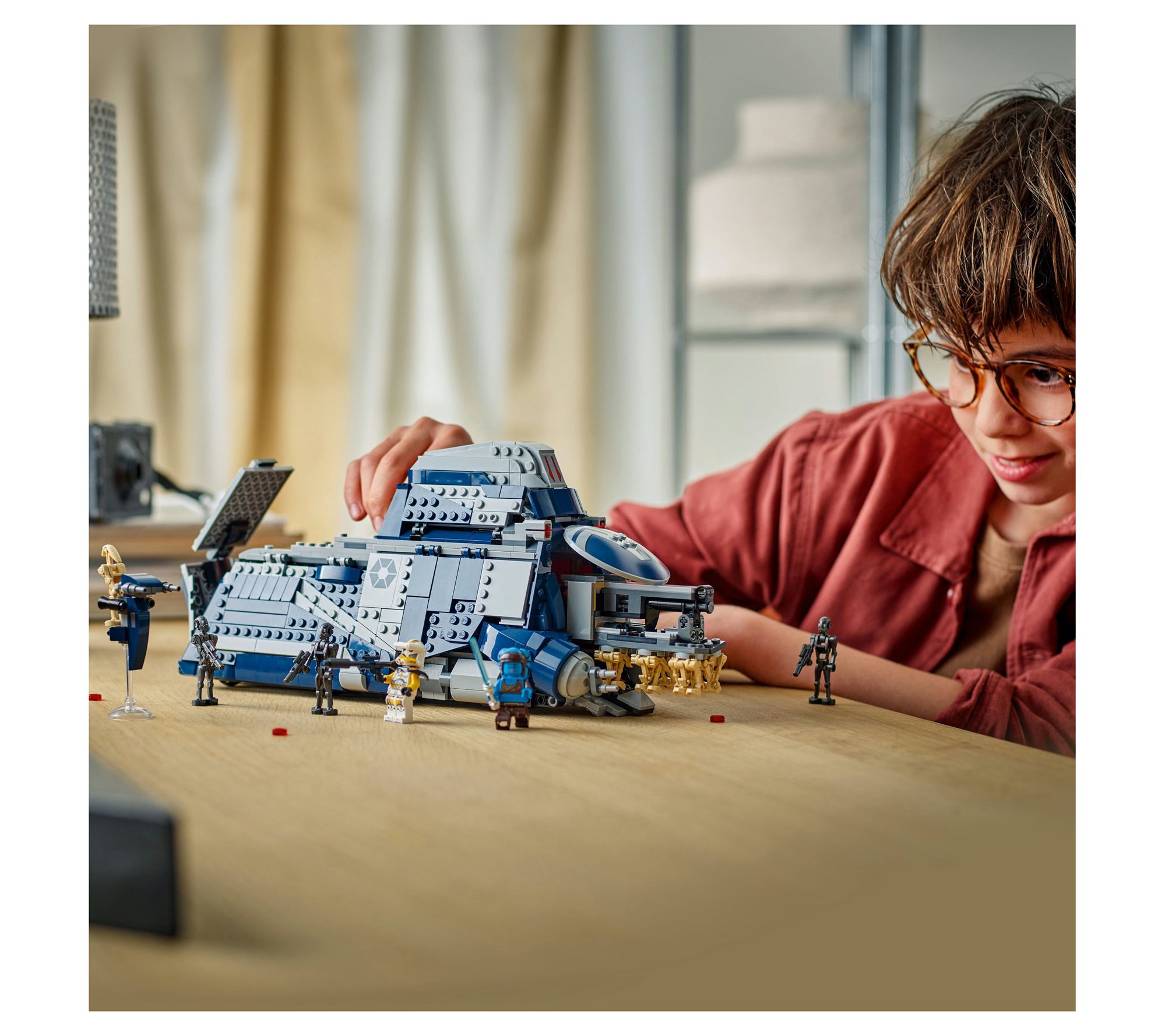 Reenact dramatic battles from a galaxy far, far away with this LEGO Star Wars Separatist MTT building set. Builders and collectors can recreate the excitement of The Clone Wars as they deploy droids from the fold-out deployment rack and bring the Battle of Felucia to life. Packed with authentic details, minifigures, and accessories, this blocks set inspires endless adventures and display-worthy moments. From LEGO.