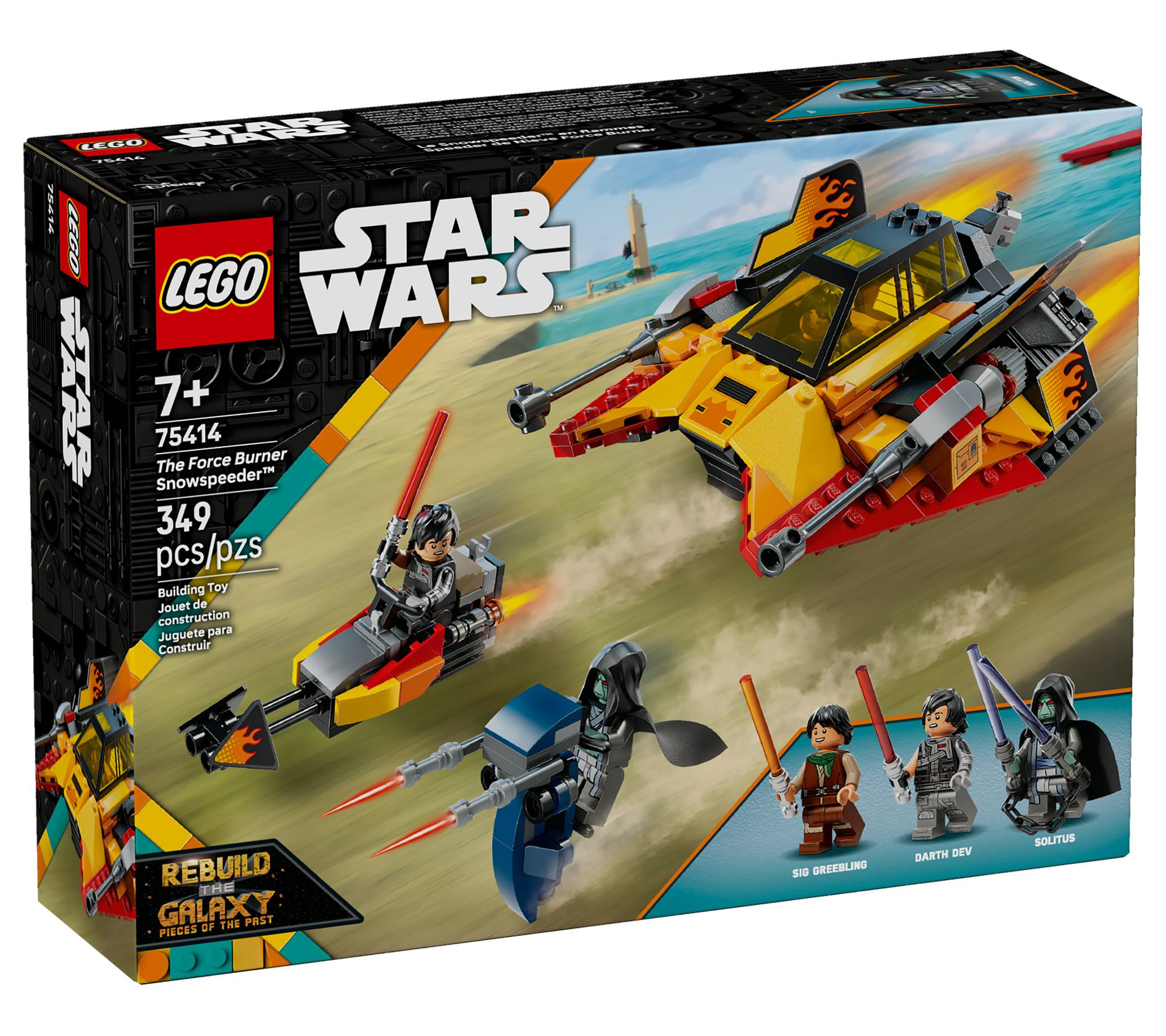 Bring home the excitement of LEGO Star Wars with The Force Burner Snowspeeder, inspired by the hit Rebuild the Galaxy series. Relive epic Lightsaber battles as you open the double cockpit, reveal the hidden speeder bike, and launch into action with three character minifigures. Whether building or displaying, this block set sparks creative adventures for fans of all ages. From LEGO.