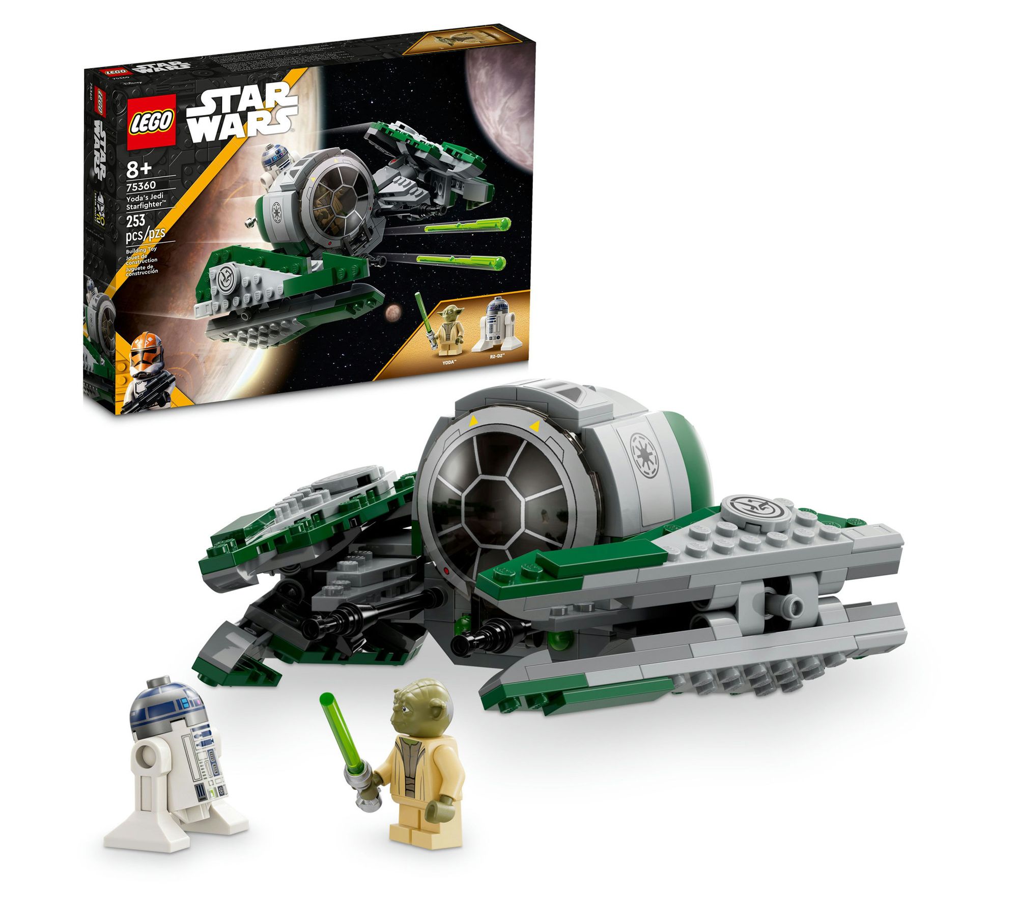 Embark on an interstellar adventure with the LEGO Star Wars Yoda's Jedi Starfighter build set. This 253-piece kit brings to life Yoda's iconic spacecraft, complete with an opening cockpit for the included Master Yoda minifigure, a slot for the R2-D2 figure, two spring-loaded shooters, and adjustable wings for dynamic play. It's a perfect gift for fans of Star Wars: The Clone Wars, offering a blend of building challenge and role-play excitement. From LEGO.