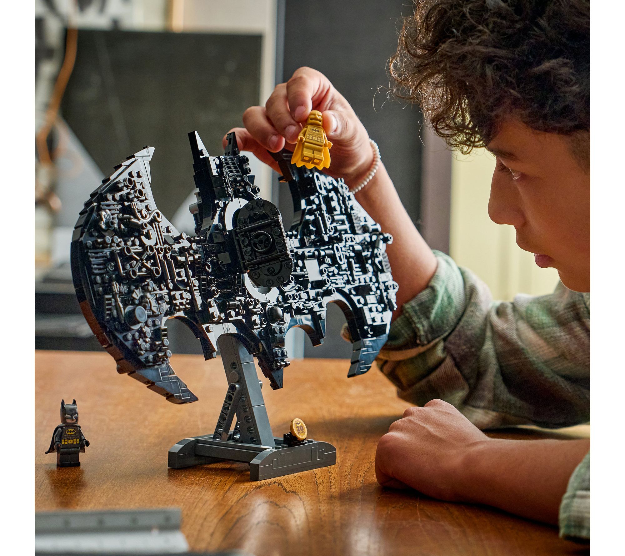 Bring the drama of Gotham City right into your home with these iconic blocks, crafted to form the legendary Batman logo. Relive superhero action by building, displaying, and even customizing with famous DC Universe accessories -- then choose to showcase your creation on a stand or proudly hang it on the wall. From LEGO.