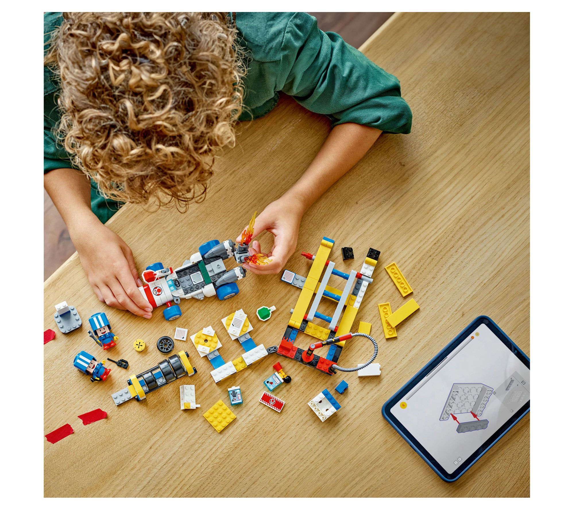 Kids can gather the Blue Toads and get ready for some high-octane fun in Toad's Garage! They'll build and customize the B Dasher kart to their liking, change tires, attach the engine, and even pick horn sounds with the help of LEGO Mario, Luigi, or Peach (figures not included). This set is sure to inspire hours of imaginative play. From LEGO.