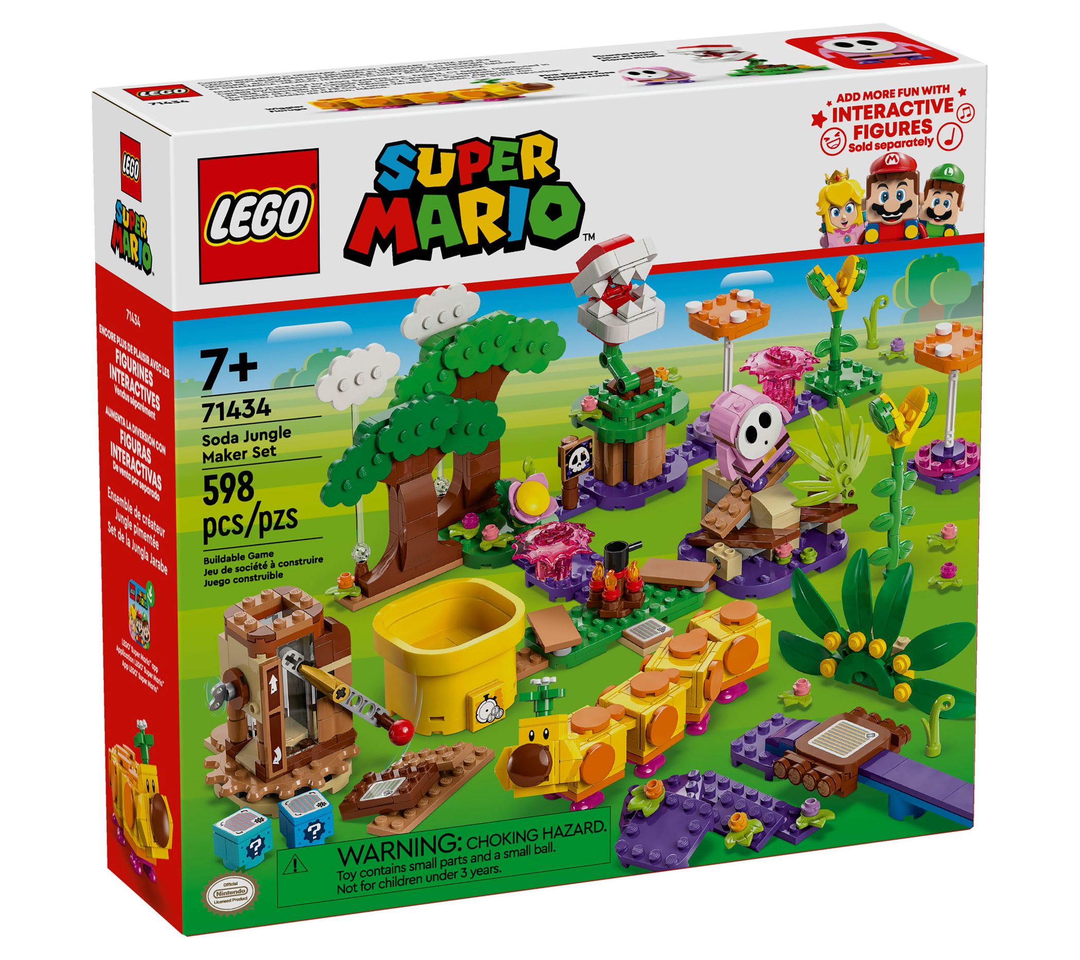 Let your imagination run wild with the LEGO Super Mario Soda Jungle Maker Set! Create your own thrilling adventures with customizable features, from rafting across dangerous waters to riding the Wiggler through a poisonous swamp. This set includes three fun characters: Pink Shy Guy, Wiggler, and Piranha Plant, ready for action. From LEGO.