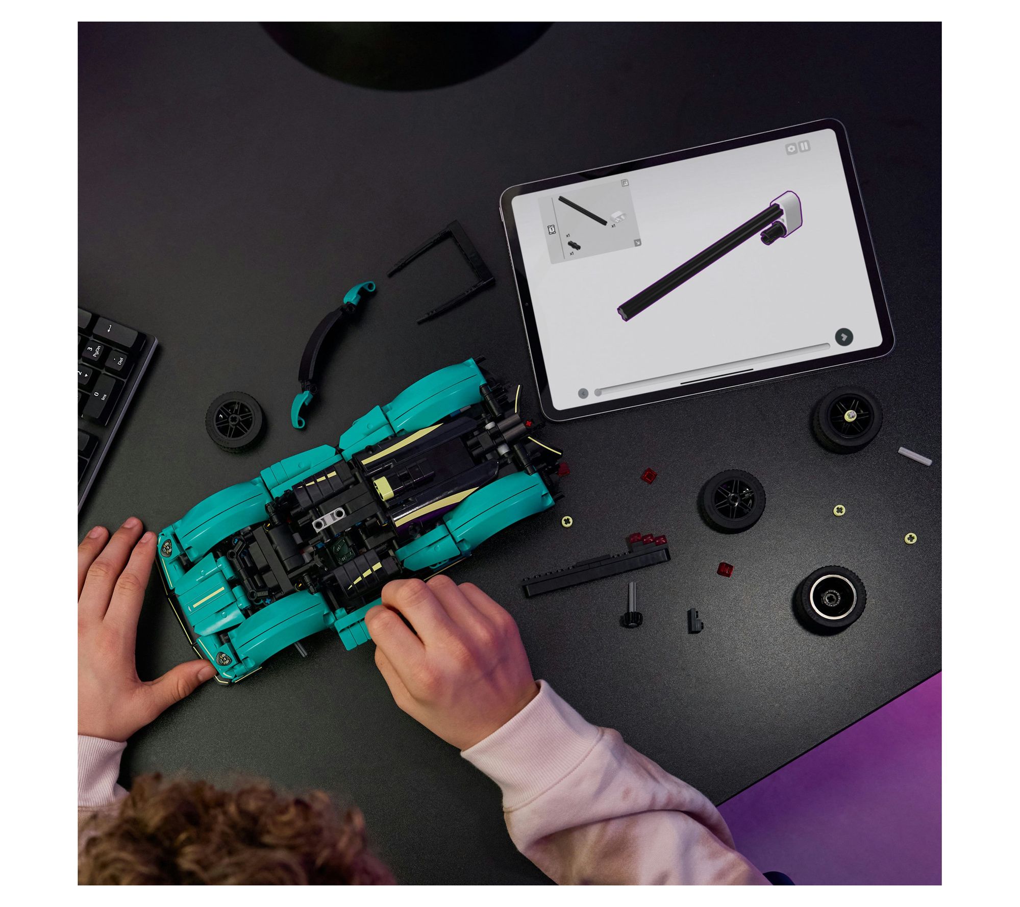 Create your own racing excitement with this LEGO Technic Aston Martin Valkyrie blocks set, designed for sports car enthusiasts and aspiring engineers alike. Build the stylish model, explore working gullwing doors, and reveal the V12 engine's moving pistons -- every detail brings the allure of a real hypercar to life. From LEGO.