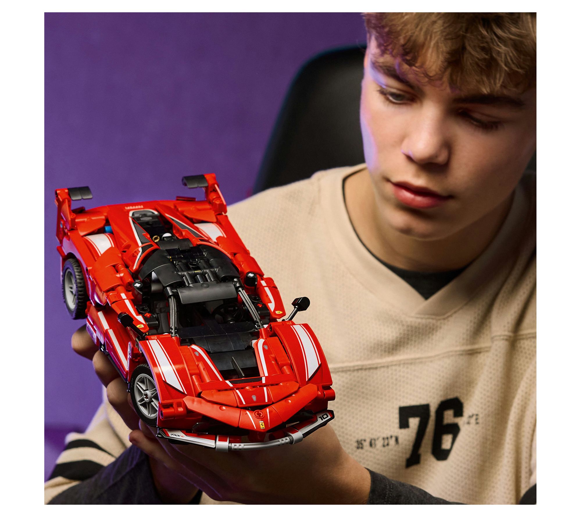 Experience the thrill of precision engineering as you recreate the Ferrari FXX K with this LEGO Technic model car kit. With authentic features like butterfly doors, a detailed V12 engine with moving pistons, and a striking red finish, this STEM building set offers hours of immersive building fun for car lovers. From LEGO.