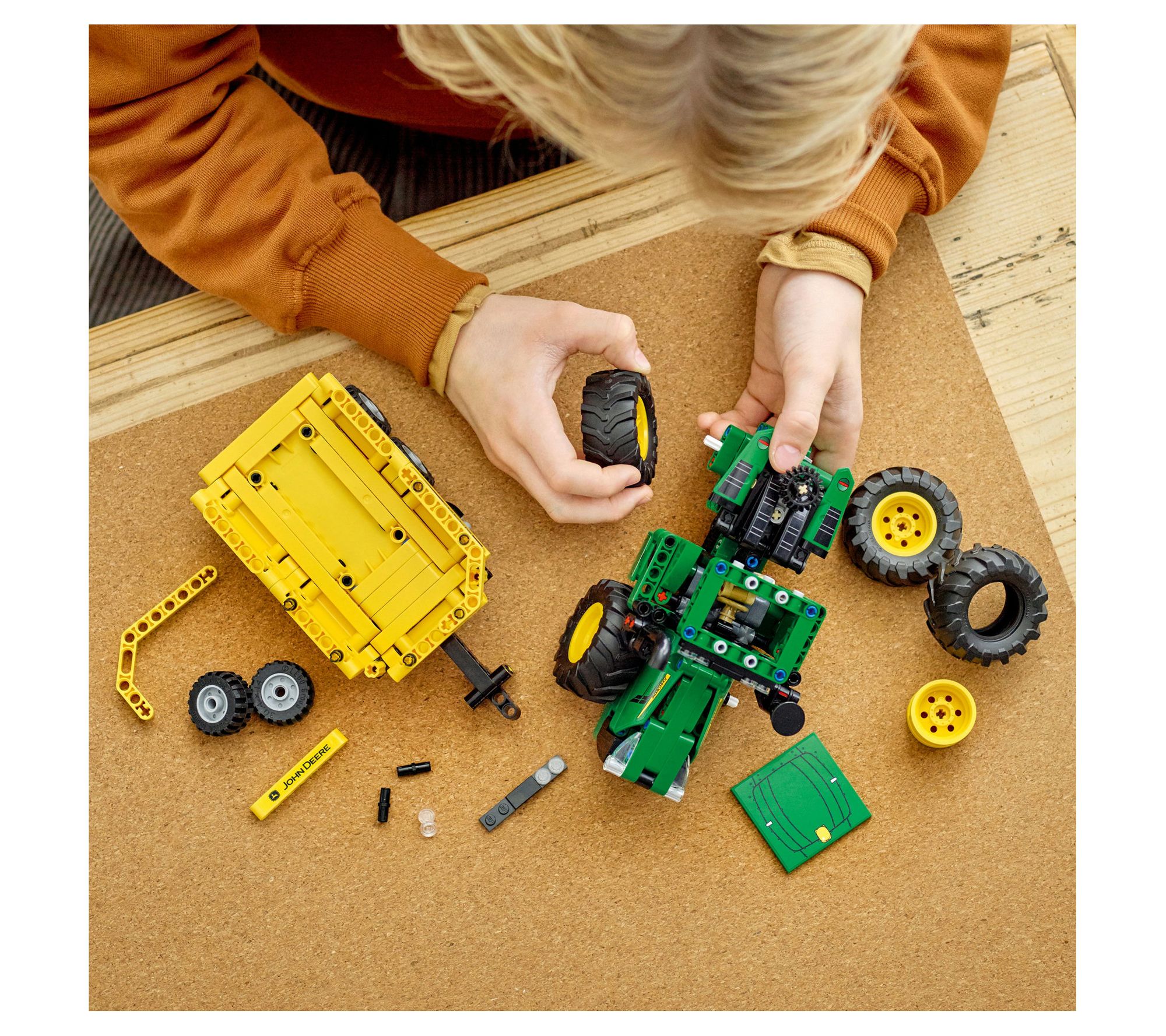 Jump into a world of agriculture and engineering with the Technic John Deere 9620R 4WD tractor set. This meticulously designed kit offers a realistic and immersive building experience, featuring huge wheels, articulated steering, and a driver's cab with a rotating seat. It's the perfect gift for kids who are fascinated by tractors and farming. From LEGO.