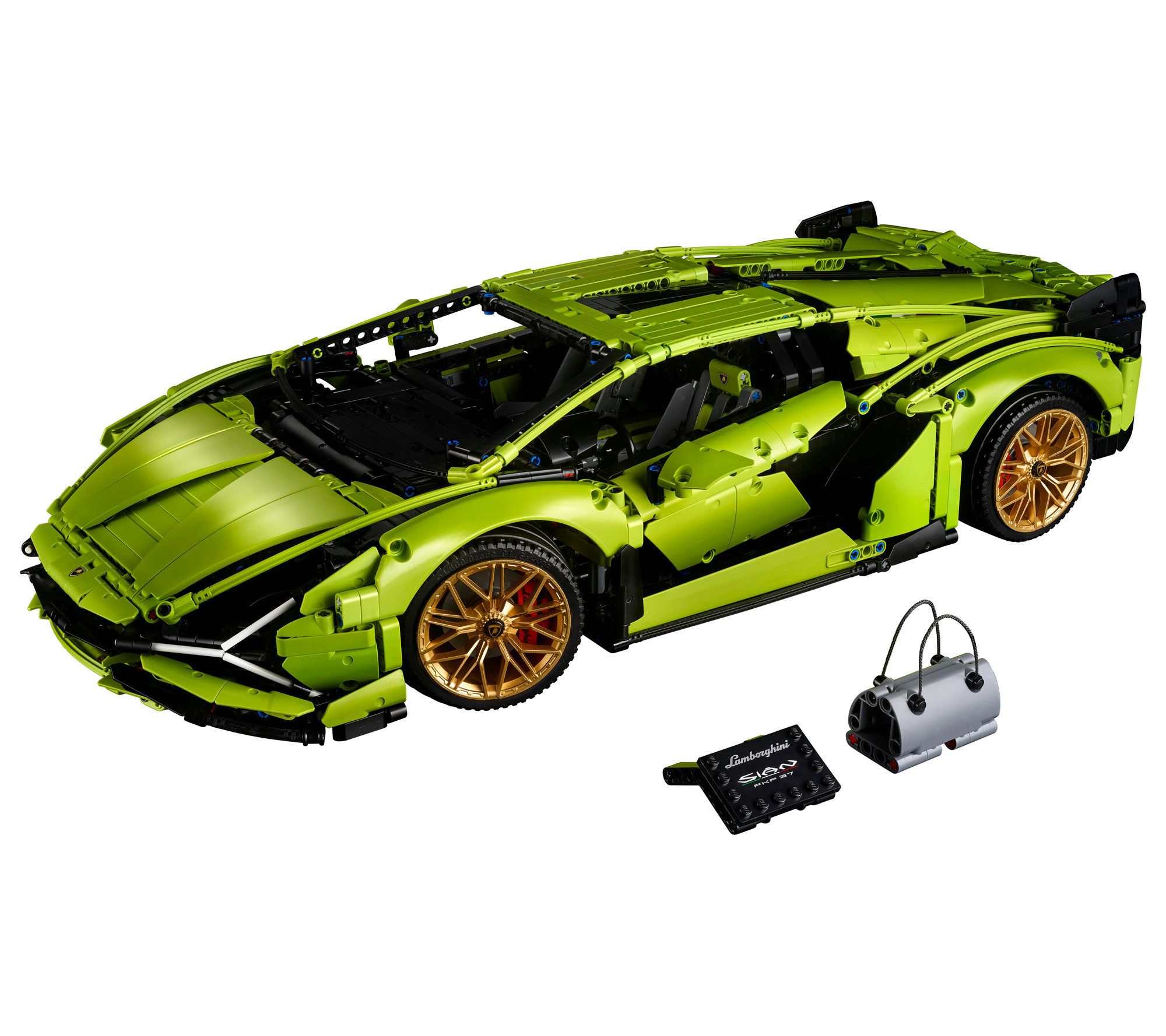 Immerse yourself in the engineering marvel of the Technic Lamborghini Sian FKP 37, a model that captures the essence and power of the iconic sports car. This comprehensive building kit is a must-have for fans, featuring authentic details like a seven-speed transmission, a V12 engine with moving pistons, and scissor opening doors, all presented in a striking lime green with golden rims. From LEGO.