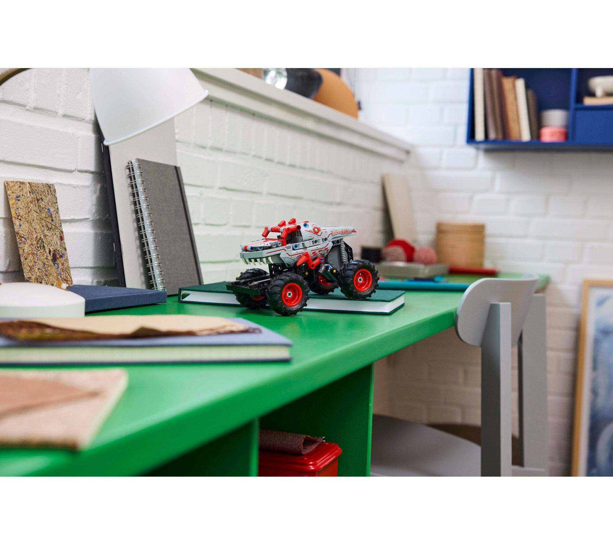 Combining skillful robotics with the ferocious power of a dinosaur, the ThunderROARus monster truck is ready to explode into action. Simply pull back the truck to send it speeding along, recreating breathtaking stunts just like those of a real Monster Jam driver. With scales, spikes, teeth, and realistic tires, it lets children immerse themselves in thrilling adventures. From LEGO.