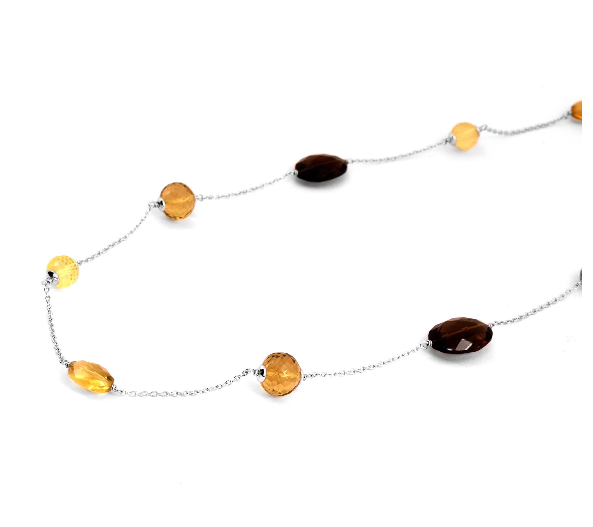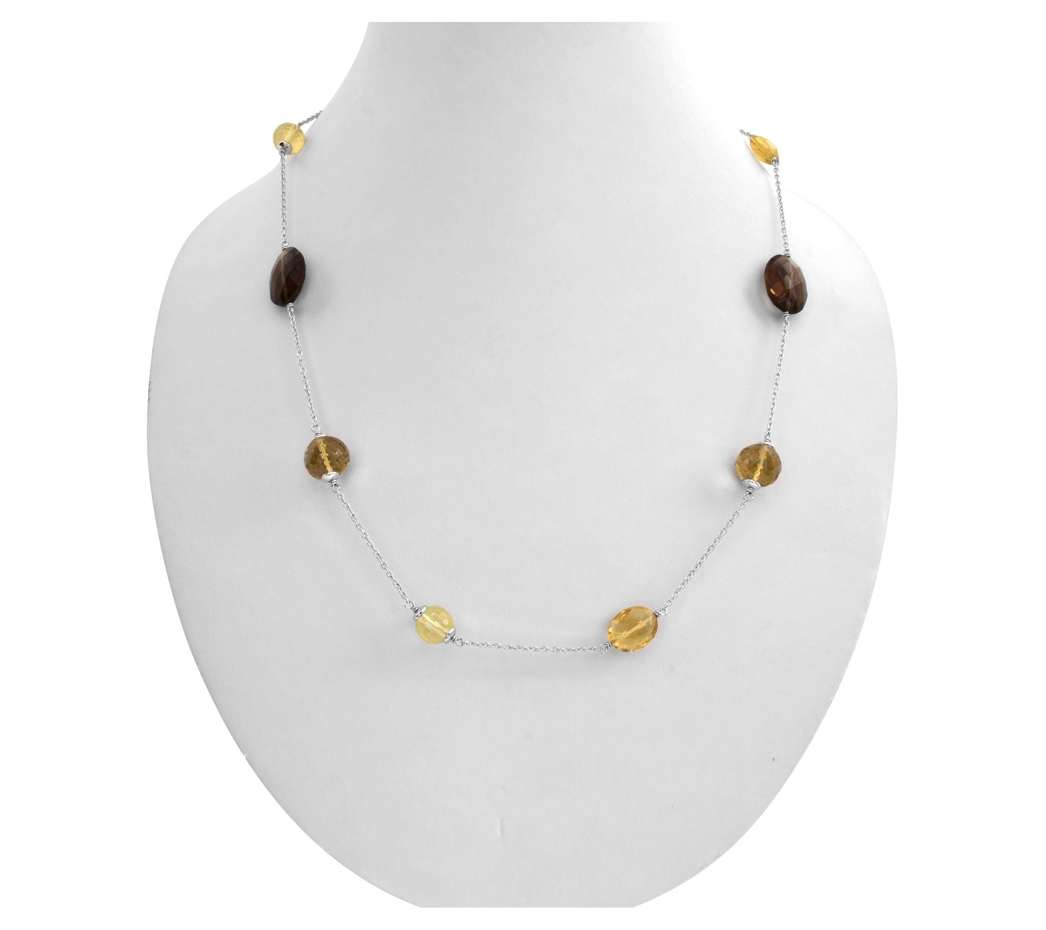 Sunny and sophisticated, this sterling silver necklace beautifully blends lemon, olive, and smoky quartz beads to deliver an unforgettable look.