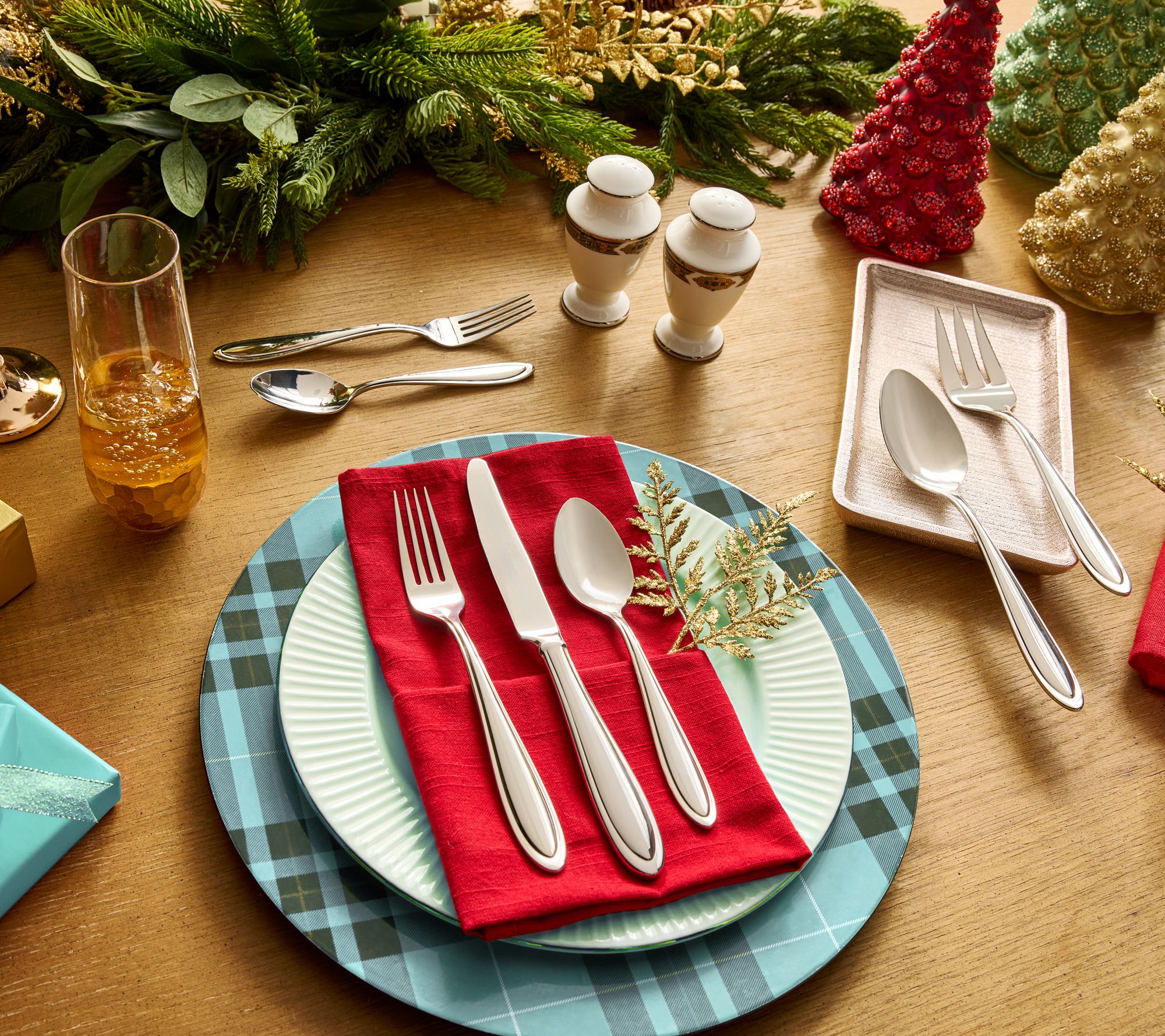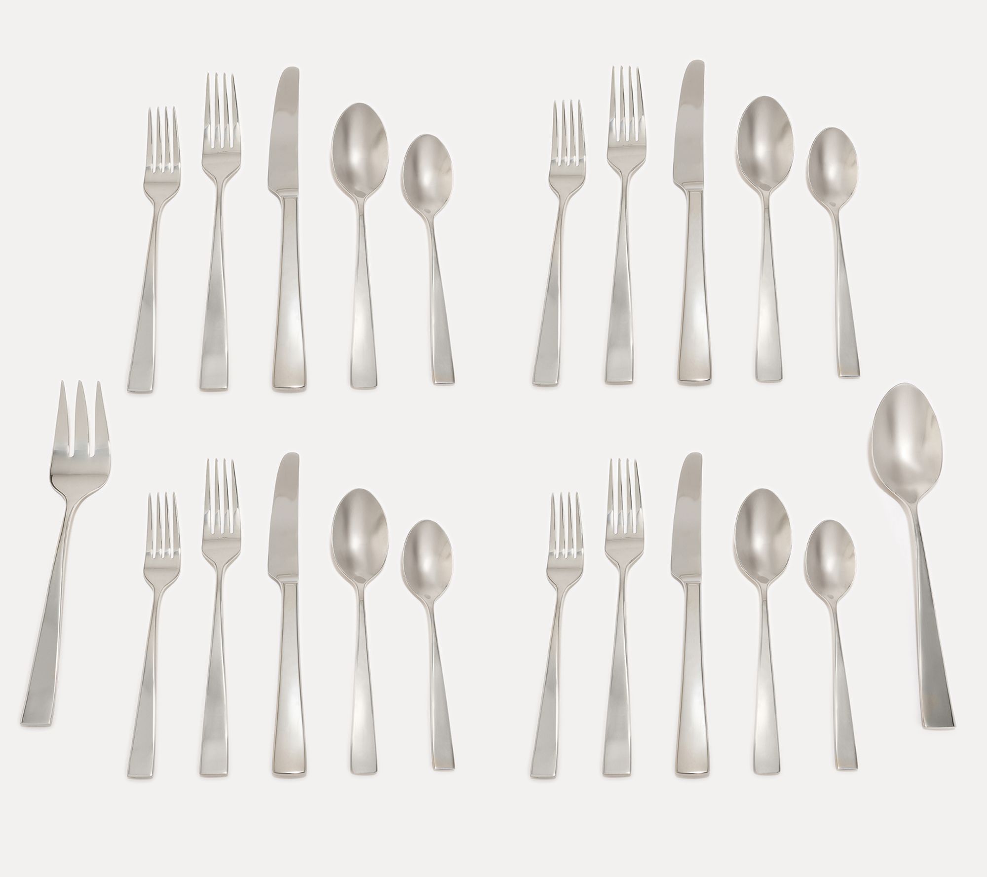 Hosting for the holidays? Forget the finger foods. Instead, get two sets to fuel the festivities. Compliments are sure to follow as this sharp-looking flatware flatters your culinary creations. Whether company's coming, you're feeding your family of four, or it's just takeout for two, you'll be proud of your tabletop presentation at every meal. From Lenox.