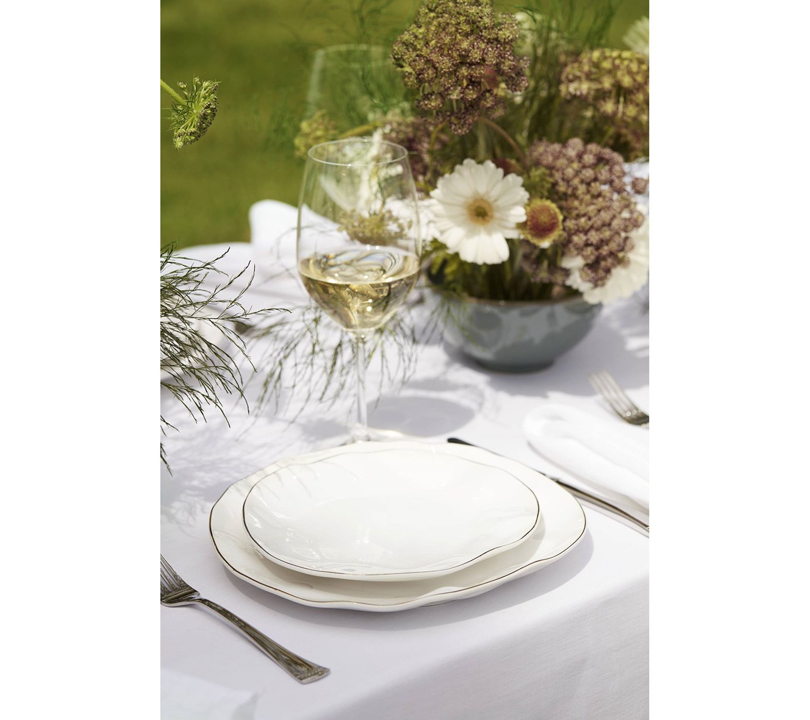 Serve everything from the main course to after-dinner treats with this sweetly simple dinnerware set. It features a thin goldtone rim on each piece for a beautifully unique accent. From Lenox.