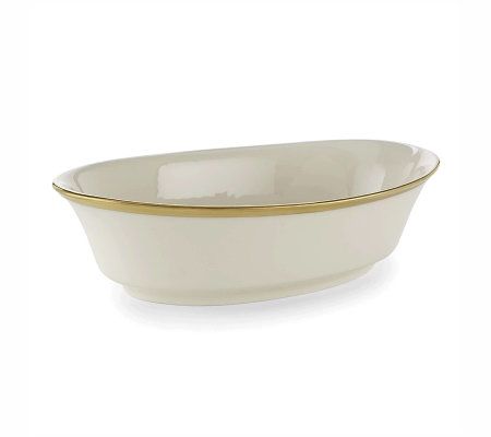 Present your delicious dishes in this Lenox Eternal open vegetable bowl. With its classic styling and oval shape, it makes an attractive addition to any table setting. A charming complement to the Eternal set or other Lenox patterns, the dish is elegantly crafted of ivory bone china with gold accents. Dishwasher safe.