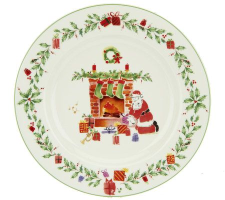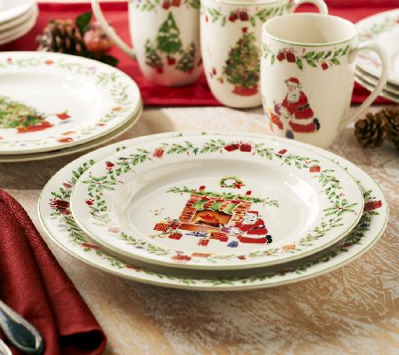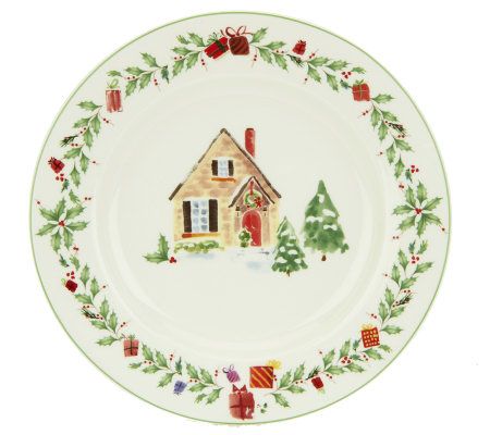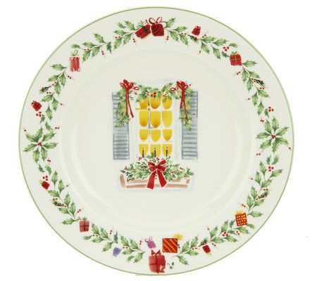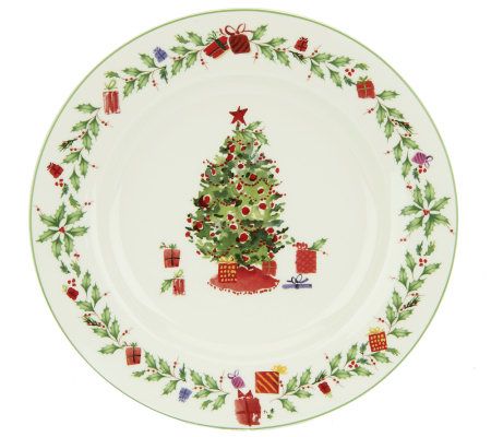 Set a tabletop tradition. An updated version of the top-selling Holiday pattern, this 12-piece fine porcelain dinnerware set features festive holiday scenes accented with garland. Sure to add elegance to your merry mealtime. From the Lenox Holiday Collection.