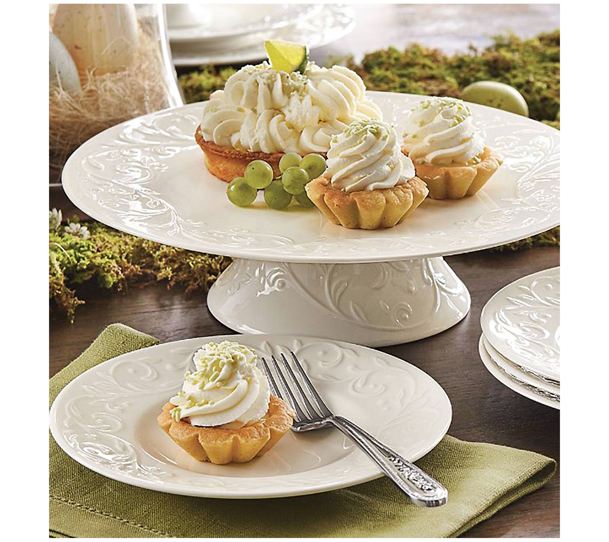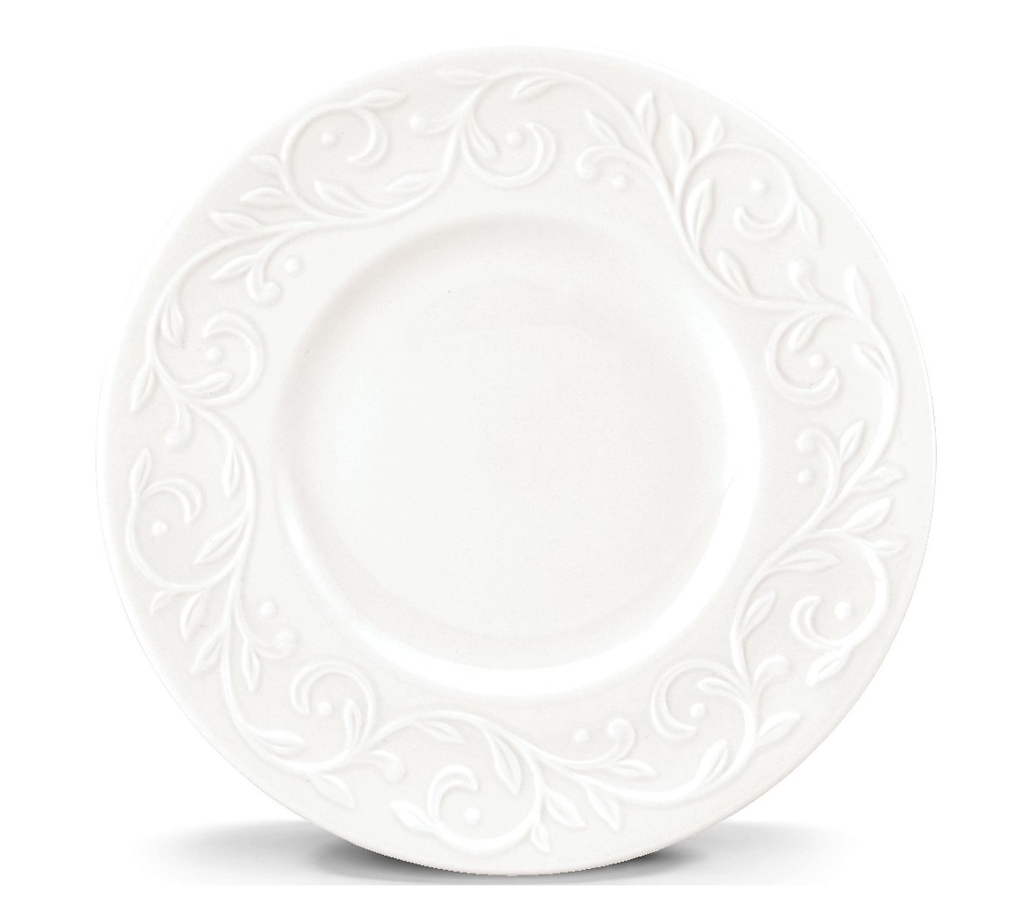 Serve your favorite desserts in style with the Lenox Opal Innocence Carved 4-piece dessert plate set. These elegant porcelain plates feature a vine motif in raised detail, adding a touch of sophistication to your table. From Lenox.
