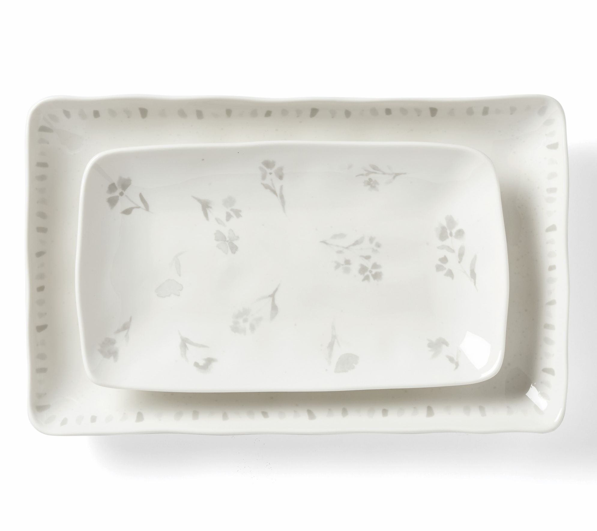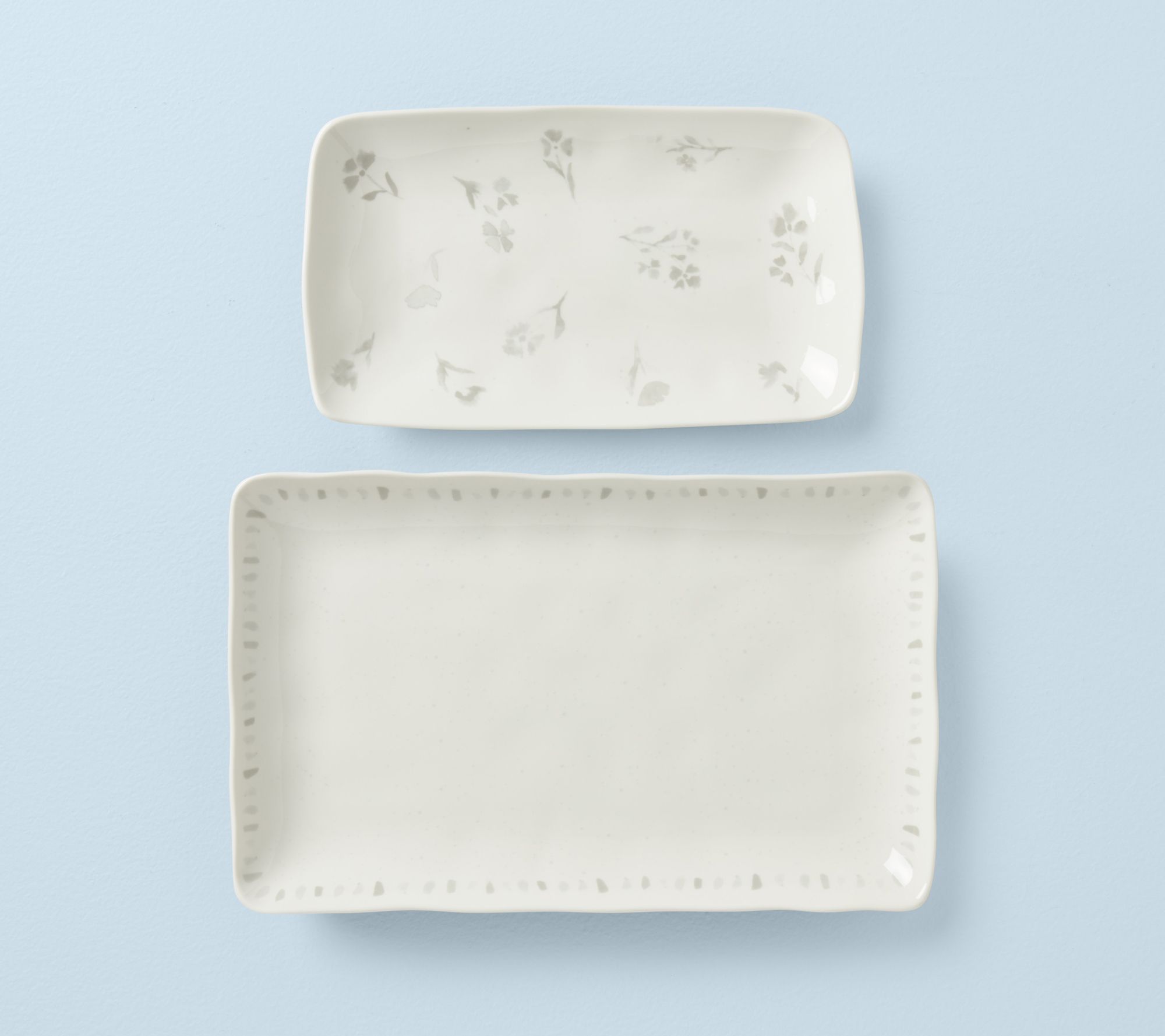 Lenox Oyster Bay two-piece nesting serving platters bring a touch of elegance to your dining experience. The calming, organic shapes and soft grey watercolor-inspired art make these platters perfect for any occasion. From Lenox.
