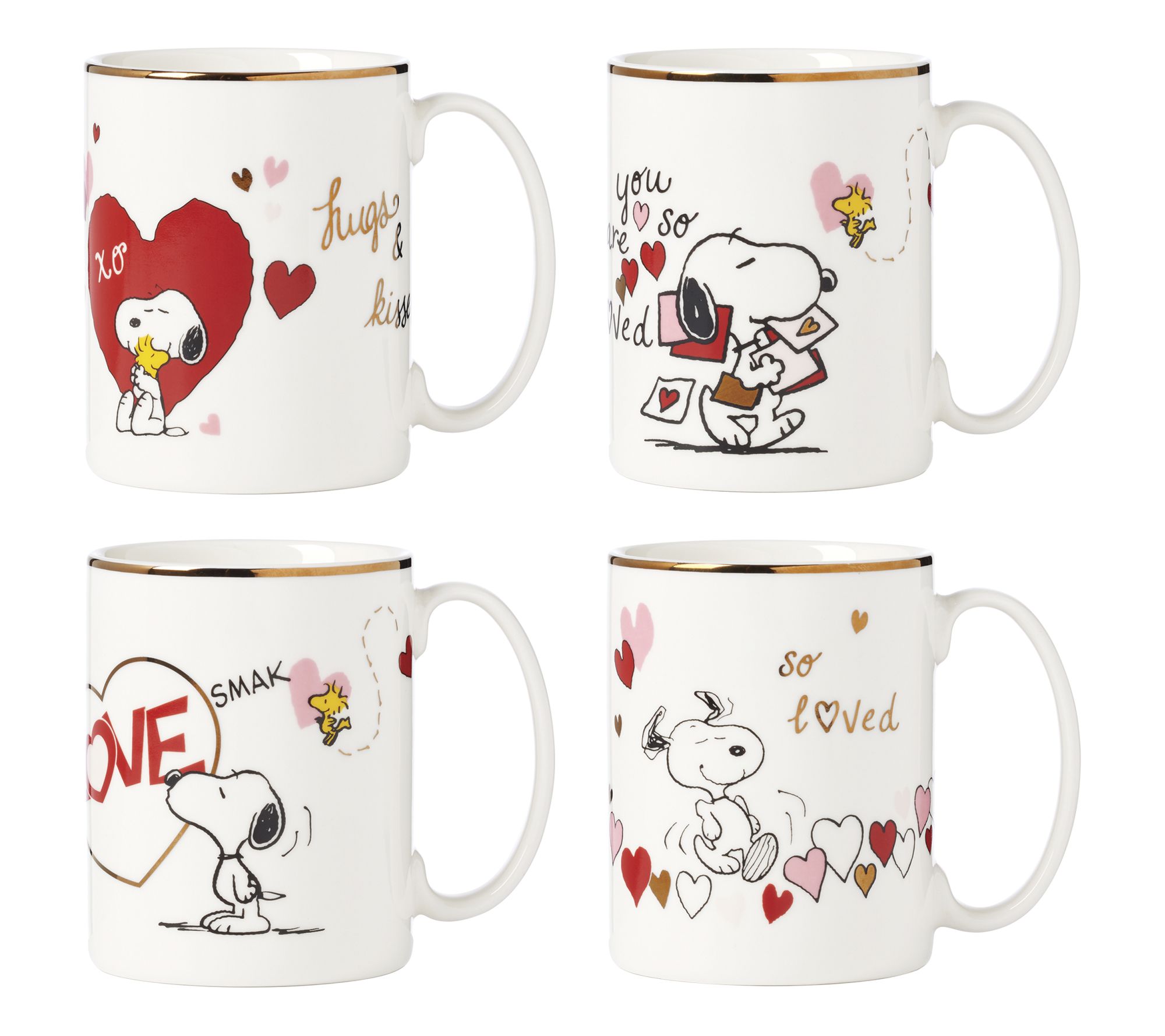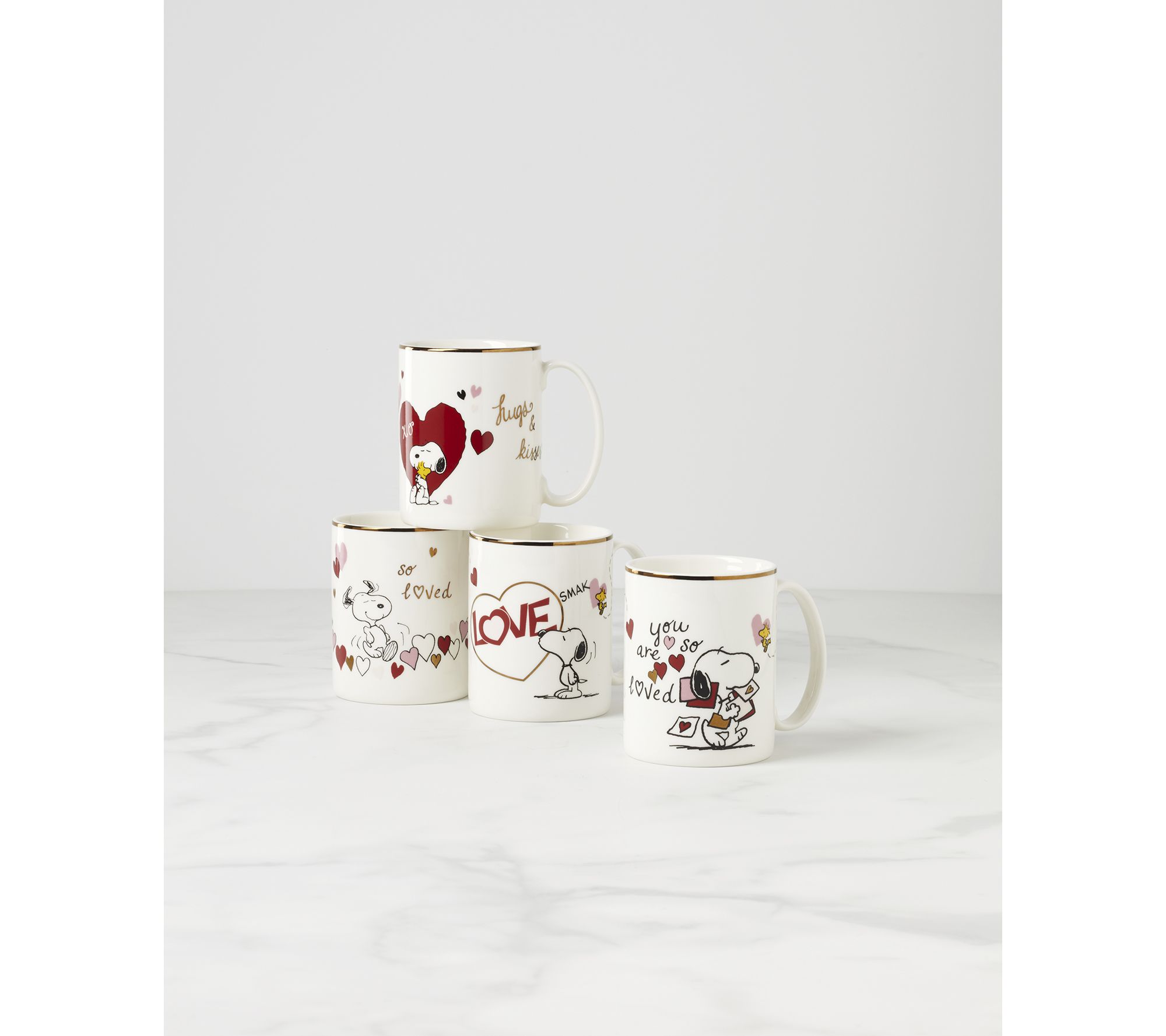 Lenox Set of 4 Snoopy Valentine's Day Mugs