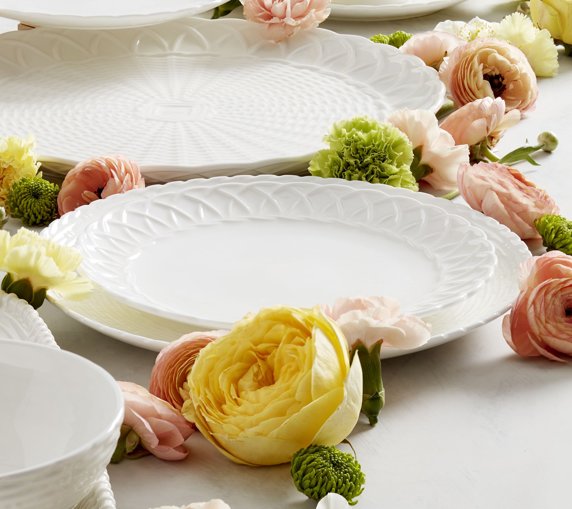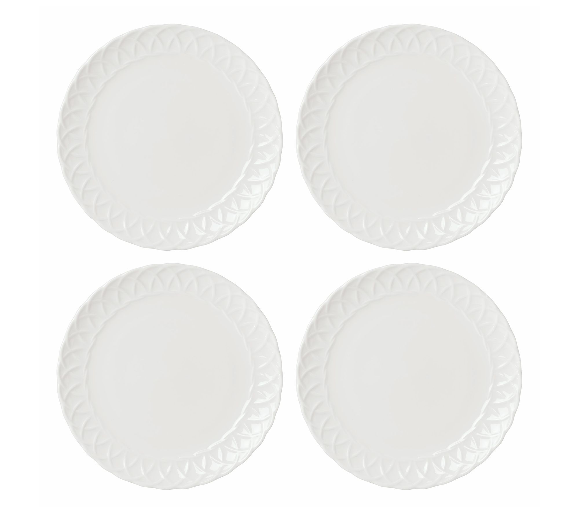 Bring a timeless element to your table with the Lenox Wicker Creek set of four accent plates. Crafted from bone china, each plate features a cleverly textured woven wicker design, perfect for evoking warm breezes and summer gatherings. Mix and match these bright white plates for the freshest tablescapes. From Lenox.