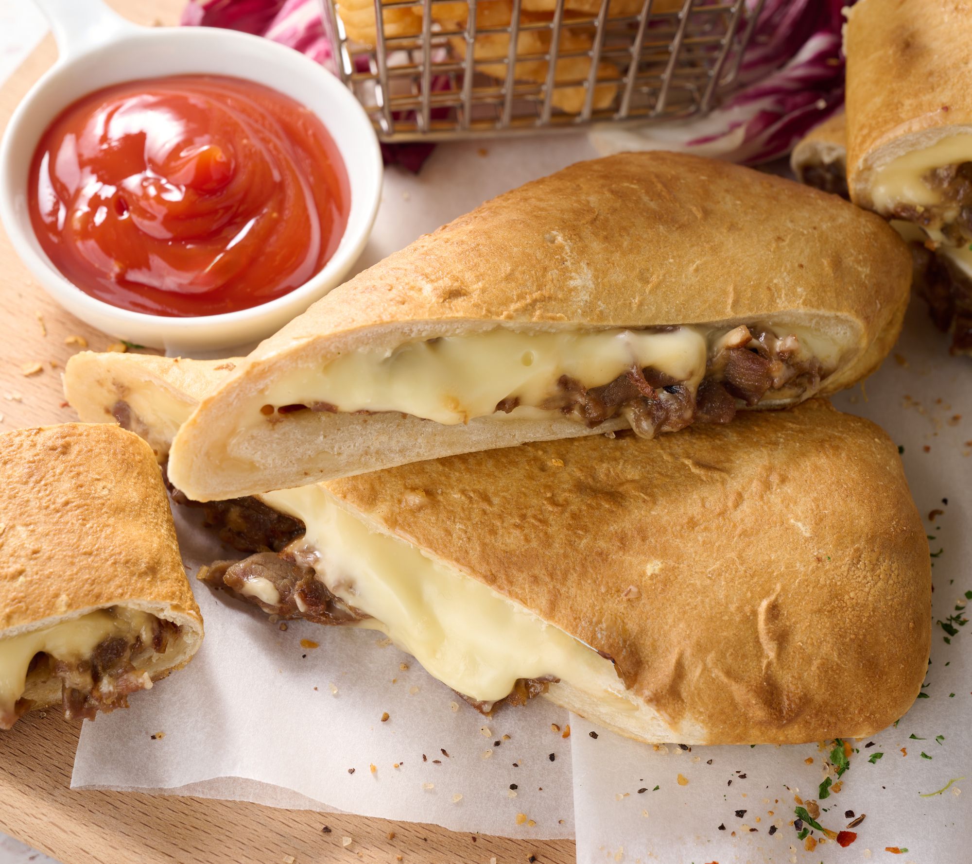 • Philly Cheesesteak: stuffed with steak, cheese, and onions