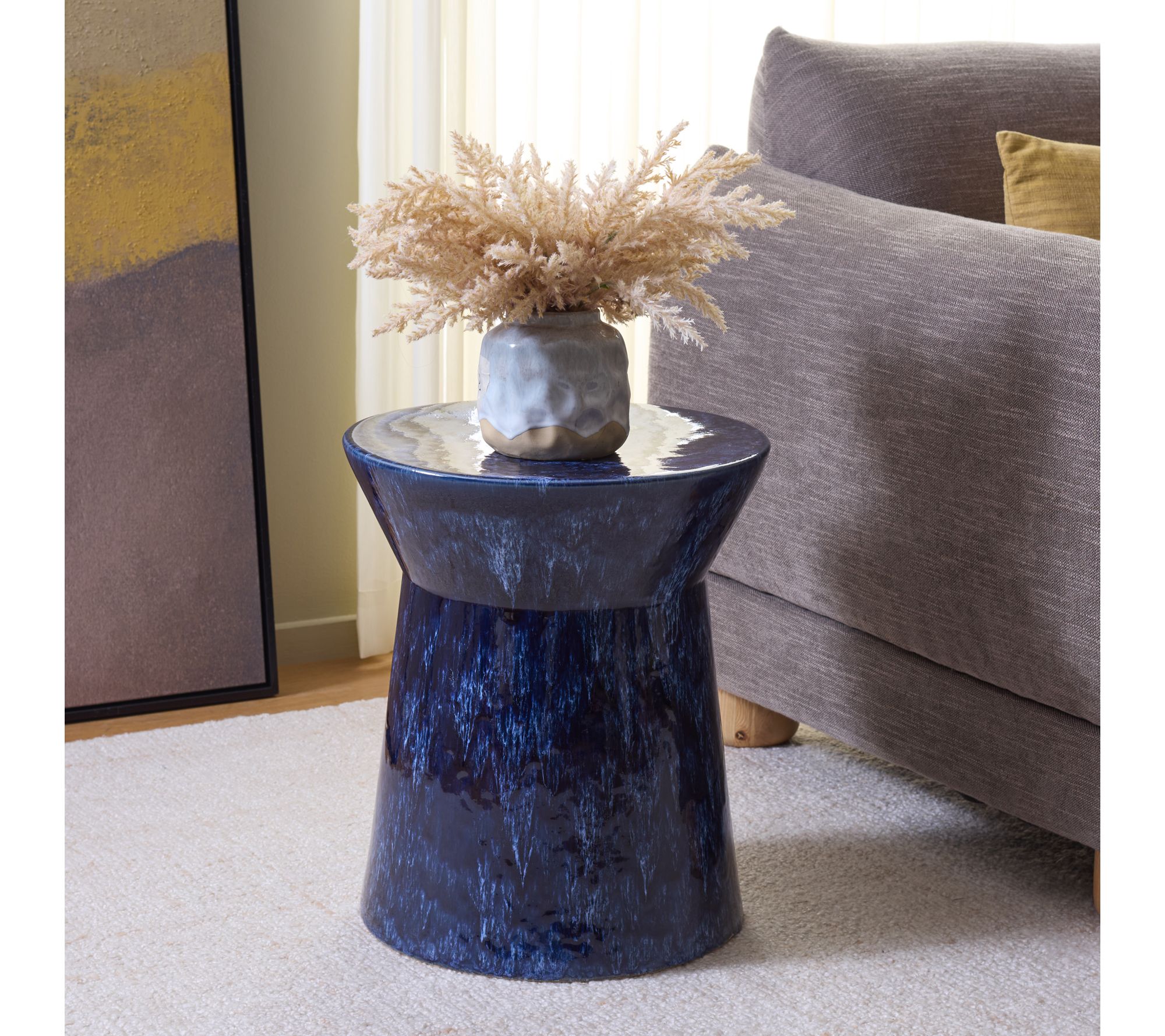 Enhance your outdoor gathering space or cozy indoor nook with this ceramic garden stool, offering a dash of color and endless versatility. Use it as extra seating for backyard get-togethers, a restful side table for your morning coffee, or as an accent piece that draws the eye with its vivid finish and rounded silhouette. From the Valerie Parr Hill Collection.
