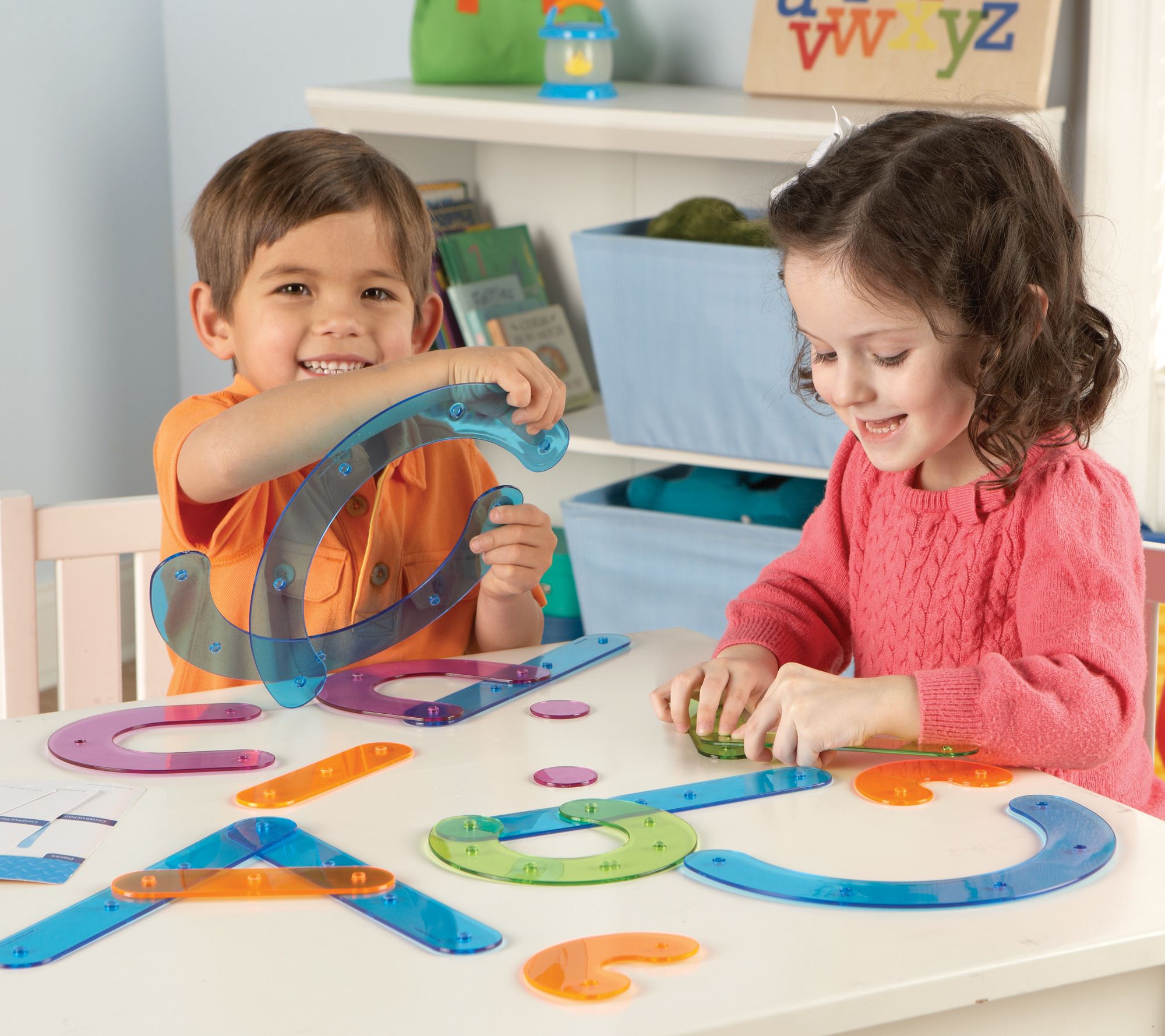 • Includes 60 color-coded pieces, 13 activity cards, and a guide