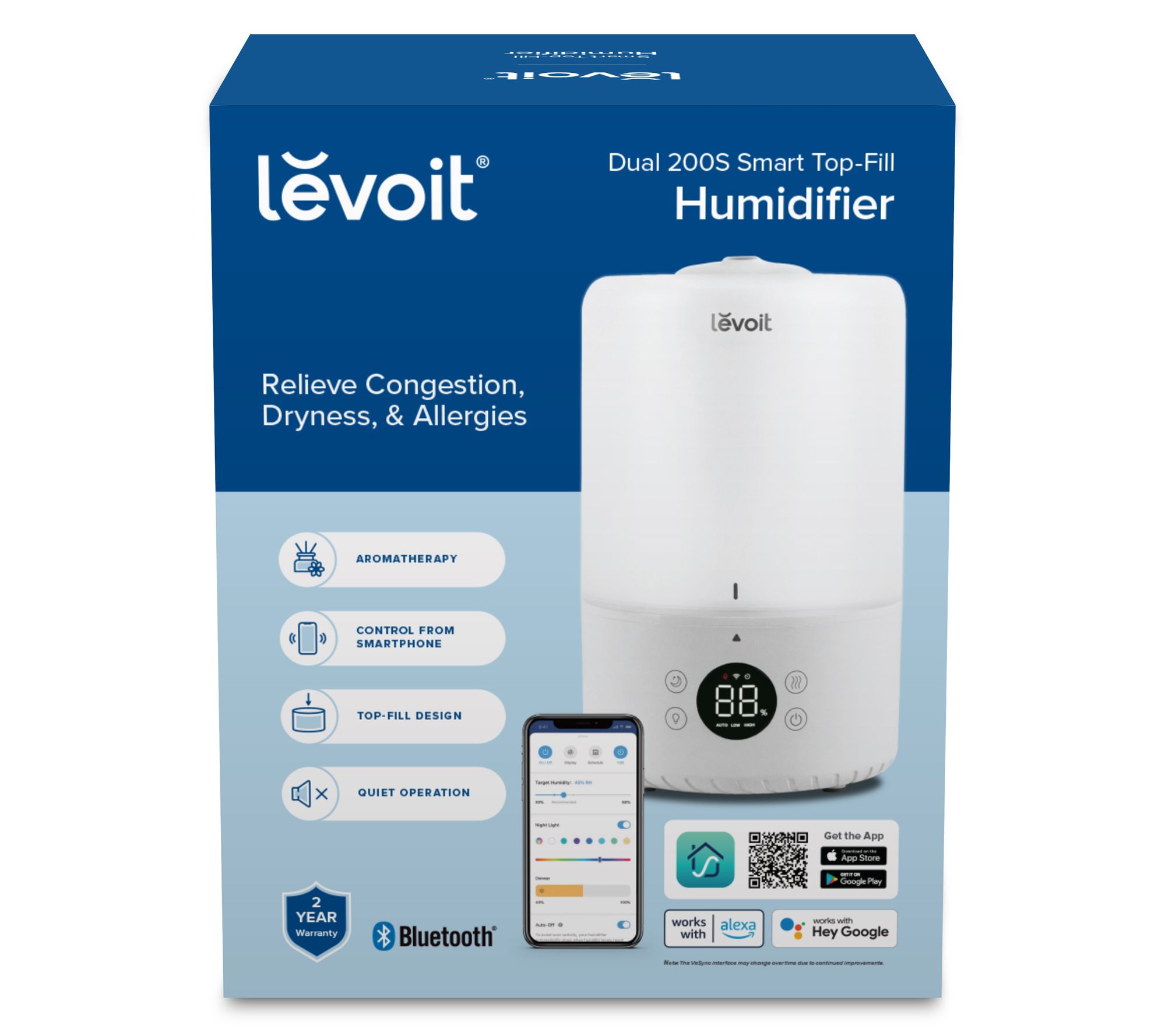 Transform dry air into gentle moisture throughout the night with the Levoit LUH-D301S Smart Cool Ultrasonic Humidifier. The compact size makes it easy to find space on a nightstand, while smart controls let you adjust settings from the comfort of your bed. Add your favorite essential oil directly to the water tank to create a calming atmosphere. From Levoit.