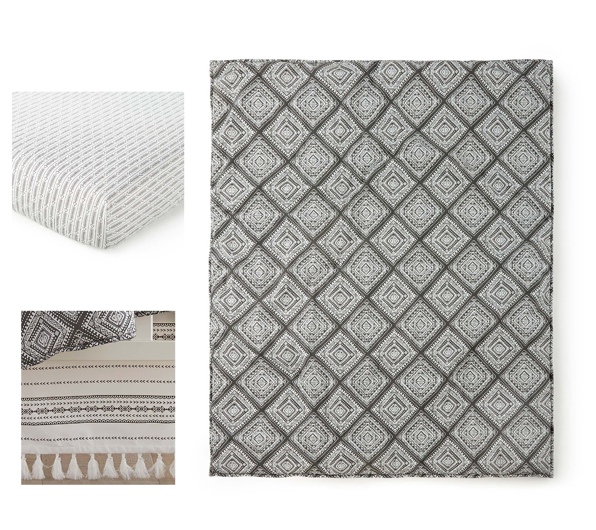 • Includes quilt, fitted sheet, and crib skirt/dust ruffle