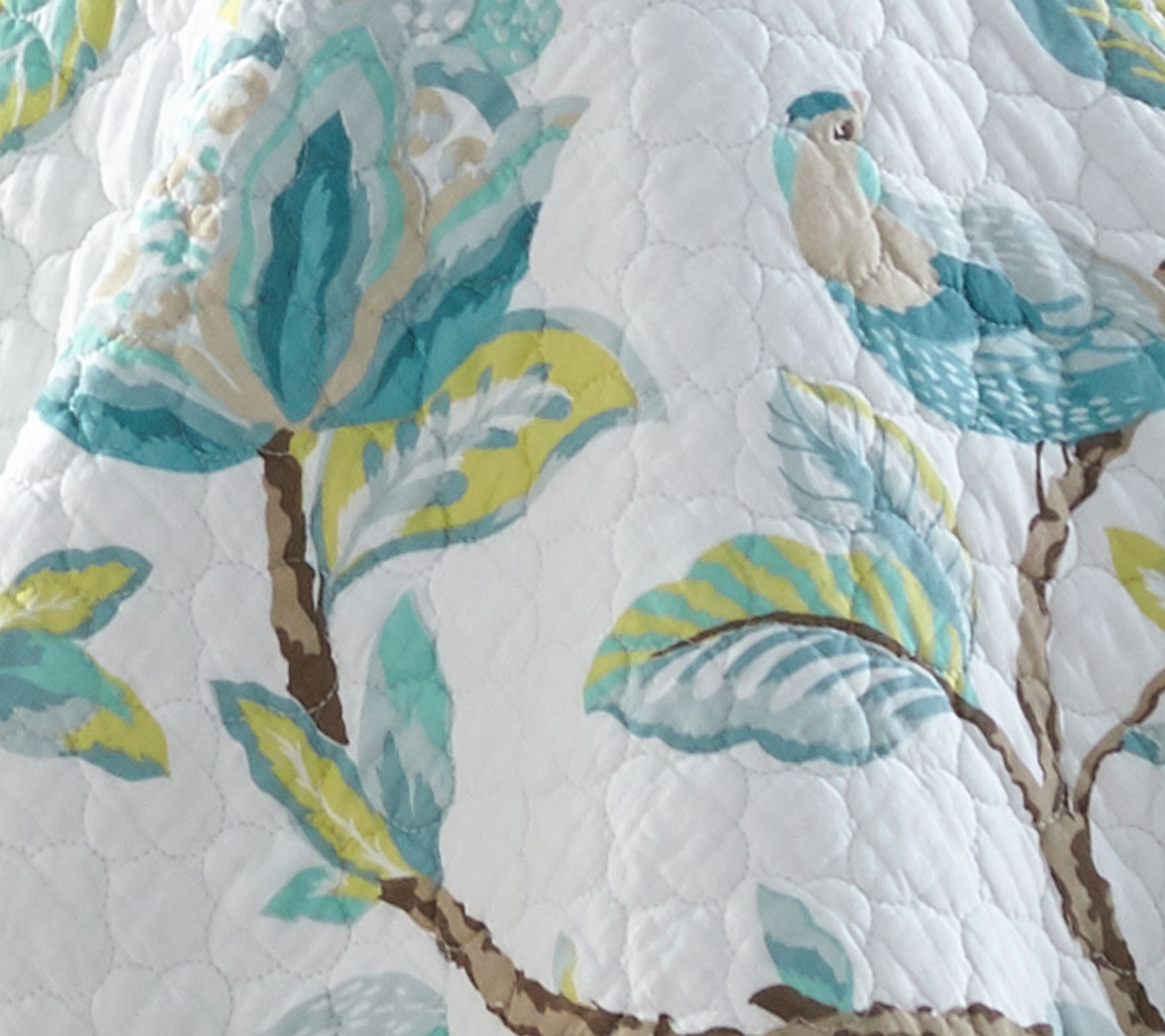 Inspired by the patterns of antique French wallpaper, this reversible Cressida quilt set features a beautiful design of birds and flowers to brighten and uplift your space. From Levtex Home.